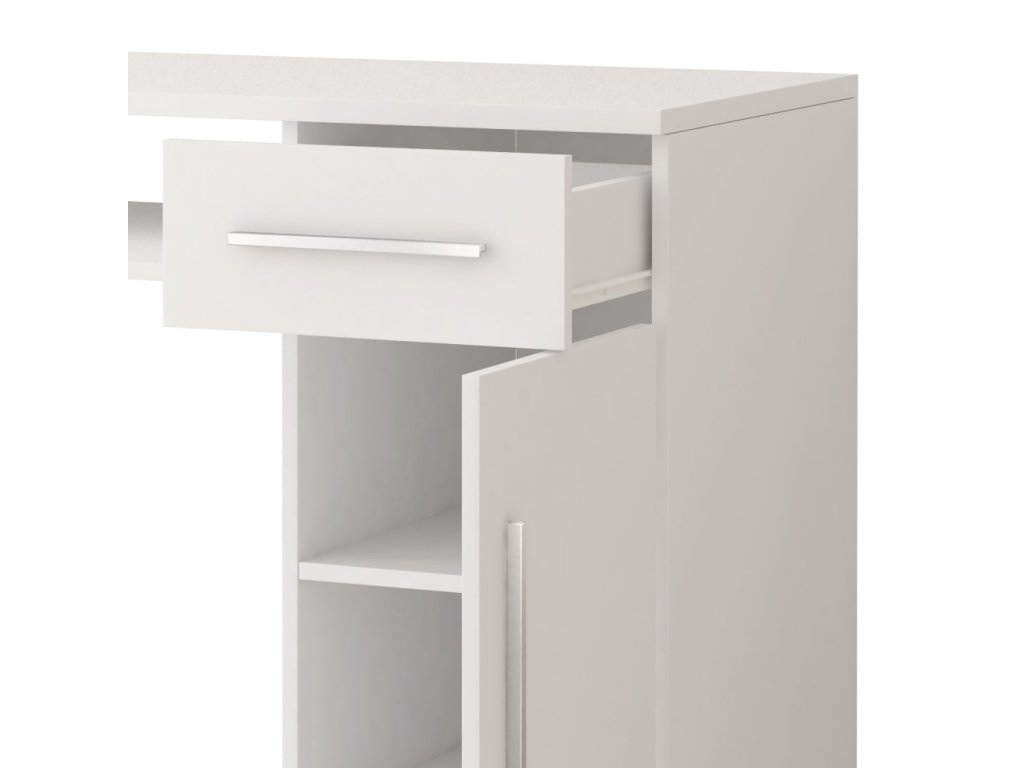 A KORNIA kollekcióba tartozó bútorok minőségi laminált 16 mm vastag (DTD) bútorlapból készülnek, amely nagyon ellenálló a karcolásokkal, a nedvességgel és a magas hőmérséklettel szemben. A szélek ABS élekkel vannak lezárva a fogantyúk pedig alumíniumból készülnek. A szett egyes darabjai matt fehér színben készülnek, így minden szobába illeni fognak. A KORNIA bútor kollekció több bútor elemből áll, amelyeket kedve szerint kombinálhat.