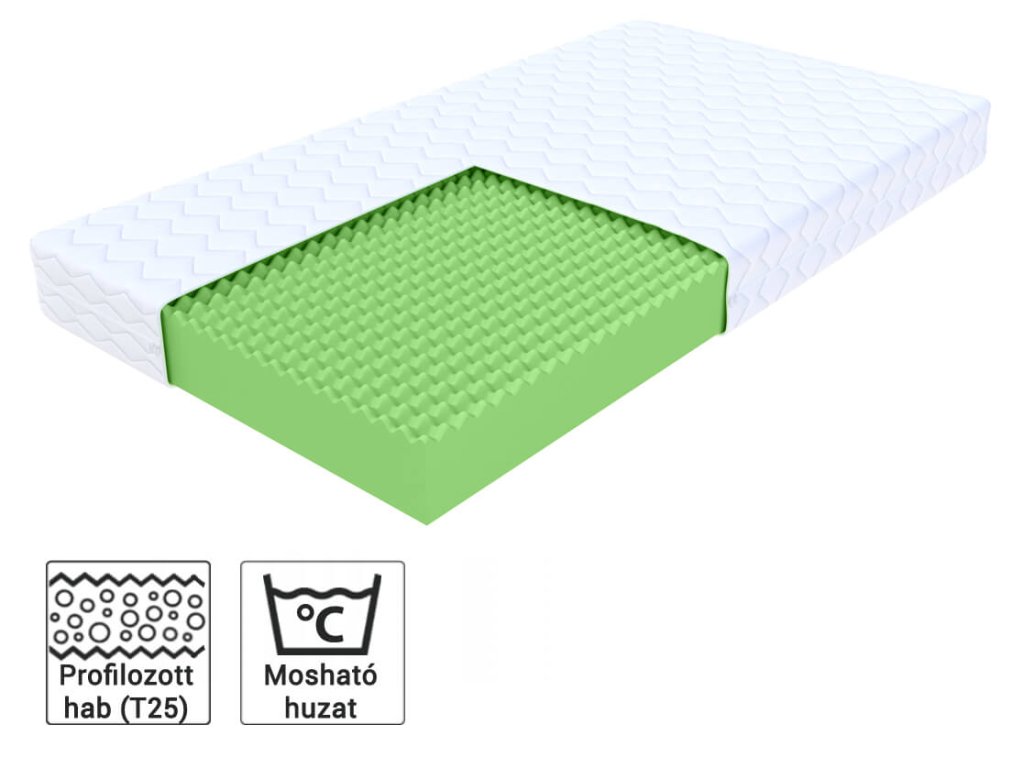 A magas minőségű 7 zónás profilozott hab biztosítja a megfelelő vérkeringést a bőr alatt és az izmok ellazulását alvás során. Hő hatására hozzáidomul a test formájához, így biztosítja a kellemes pihenést. A 7 keménységi zónának köszönhetően megfelelő alátámasztást nyújt a hátgerincnek és az egész testnek. Ez a hab allergiások számára is megfelelő.
