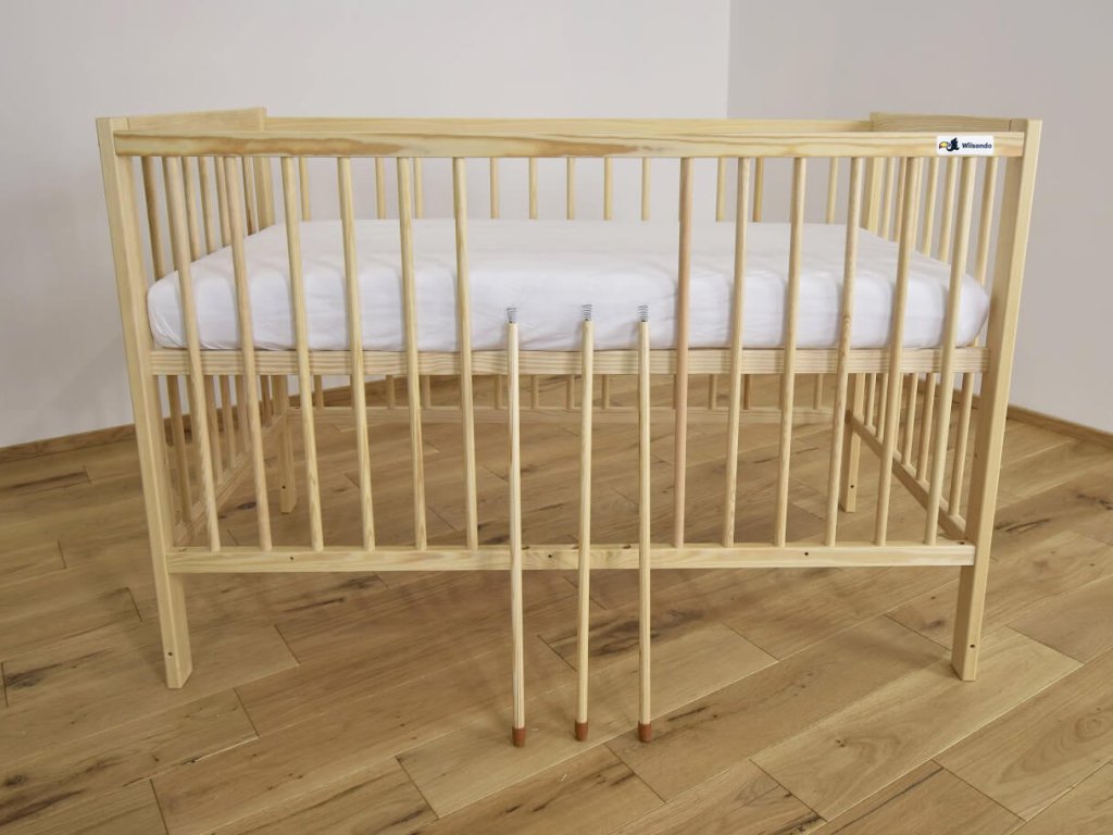 Kiságy 120 x 60 cm méretben natúr kivitelben, amely minőségi borovi fenyőből készült. A szilárd struktúrájával és a stabilitásával tűnik ki a többi közül. Továbbá biztos értékelni fogja az állítható magasságú ágyrácsot, amely három magassági fokozatban állítható (24, 38 és 53 cm). A babaágy három kivehető ráccsal is rendelkezik. Ezzel a kisággyal Ön és kisbabája is elégedettek lesznek.