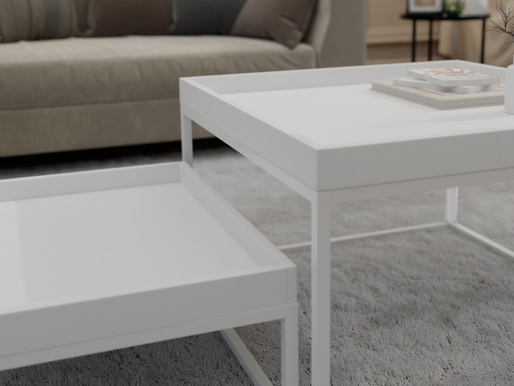 Minden minimalista vagy elegáns otthonba tökéletes választást jelentenek ezek a gyönyörű fehér dohányzóasztalok. A LABO 2az1-ben dohányzóasztalok gyönyör fehér magasított szélű asztallappal rendelkeznek és fehér vázzal, amely igazán luxusos hatást kelt. Mindkét asztal ugyanolyan designnal rendelkezik, csak a méretük és a magasságuk különbözik. Tehát az alacsonyabb dohányzóasztal könnyedén befér a nagyobb alá. Ideális kiegészítői lehetnek a nagyobb méretű ágyazható ülőgarnitúráknak vagy a kisebb kétszemélyes kanapéknak is. Tökéletes választást jelentenek a kisebb nappalikba is. A tökéletes összhatás érdekében már csak egy szőnyeg hiányzik, amely megvédi a padlót a karcolásoktól és a lábát is kellemesebb lesz egy puha felületen pihentetni.