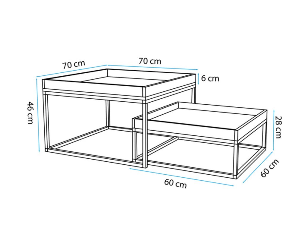 Az asztal a magasított széleinek köszönhetően igazán biztonságos, ugyanis nem tud leesni róla semmi a földre. Az alsó kisebb asztalt tárolóként is használhatja a távirányítónak vagy az újságoknak. Amennyiben betolja a magasabb alá egyáltalán nem hat majd zavaróan. A magasabb asztalra pedig tehet egy vázát virágokkal, így lesz teljes az összkép.