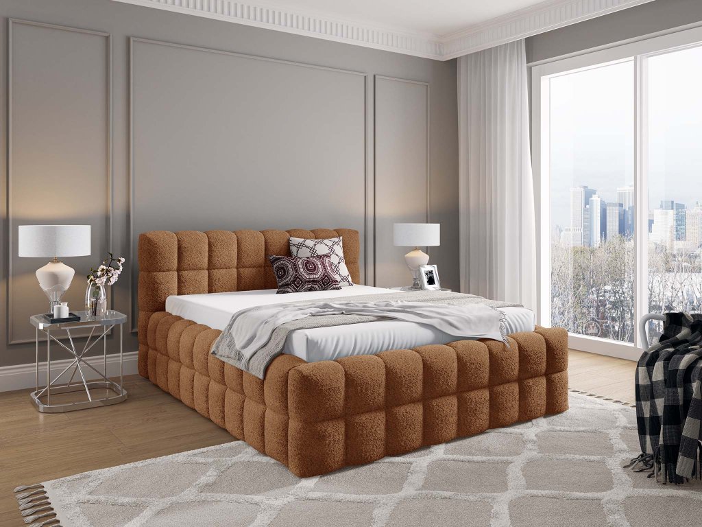 LAGOS kárpitozott ágyneműtartós franciaágy 200x200 - téglavörös