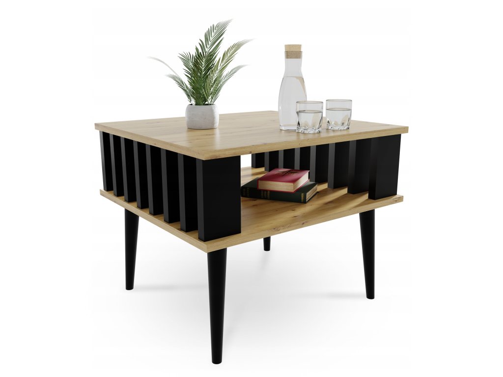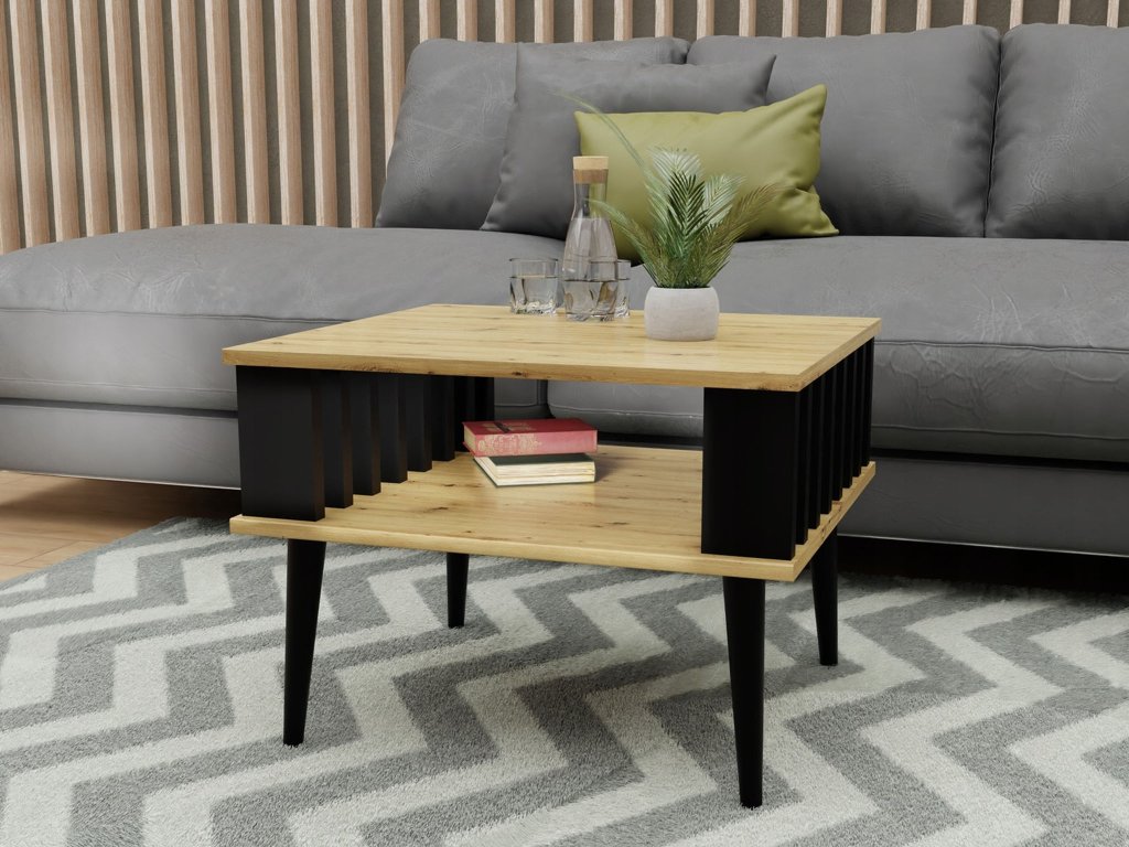 Lamelix dohányzóasztal wotan tölgy és fekete szín kombinációjában egy alsó polccal