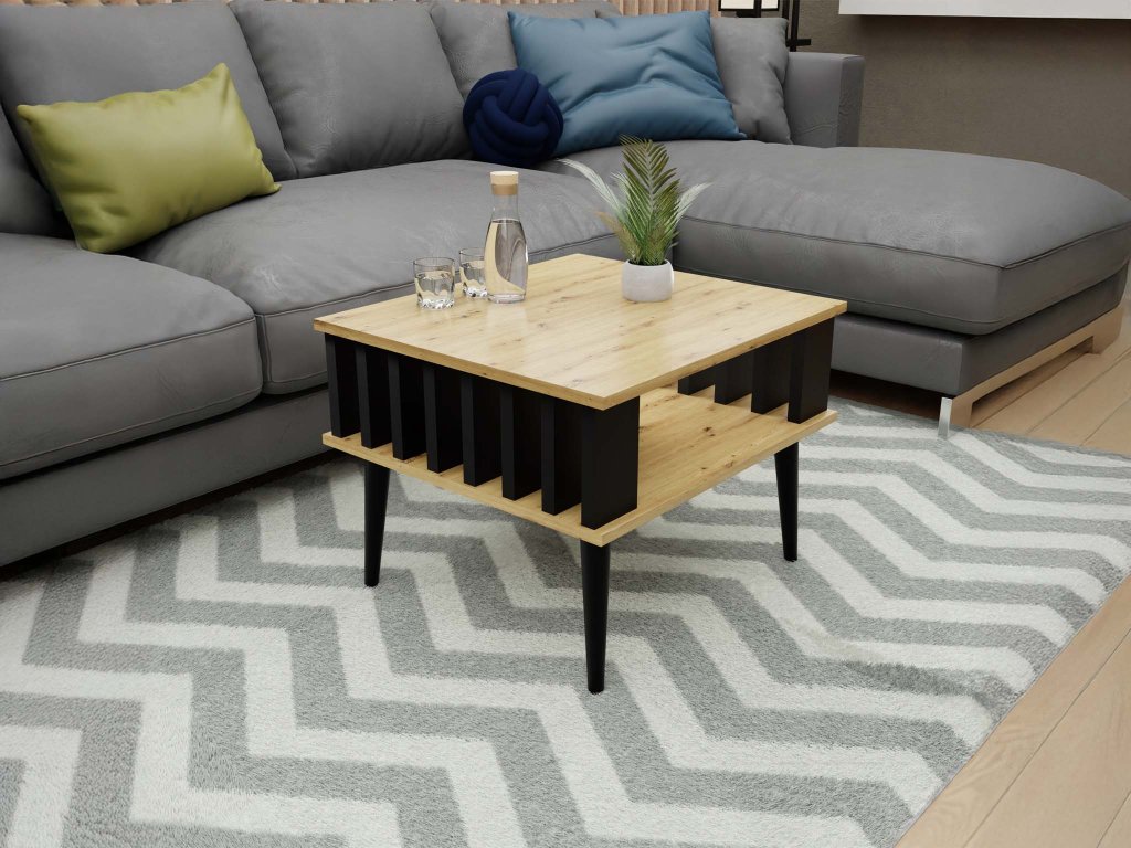 Dobja fel a nappaliját ezzel a gyönyörű Lamelix dohányzóasztallal, amely jó választás lehet minden nappaliba. Artisan tölgy színváltozaban készült laminált bútorlapból. A dohányzóasztal oldalát díszítő lécek egyedi megjelenést kölcsönöznek neki, és egyben az eleganciáját is biztosítják.Az asztal könnyedén társítható a kanapéval, a nappali bútor garnitúrával vagy a szoba egyéb bútoraival. Az asztalhoz egy praktikus alsó polc is tartozik, ahová például könyveket, magazinokat, újságokat vagy a távirányitót is elhelyezheti. A dohányzóasztal karbantartása nagyon egyszerű. Egyszerűen csak törölje át nedves ronggyal, vagy használjon bútortisztítót.