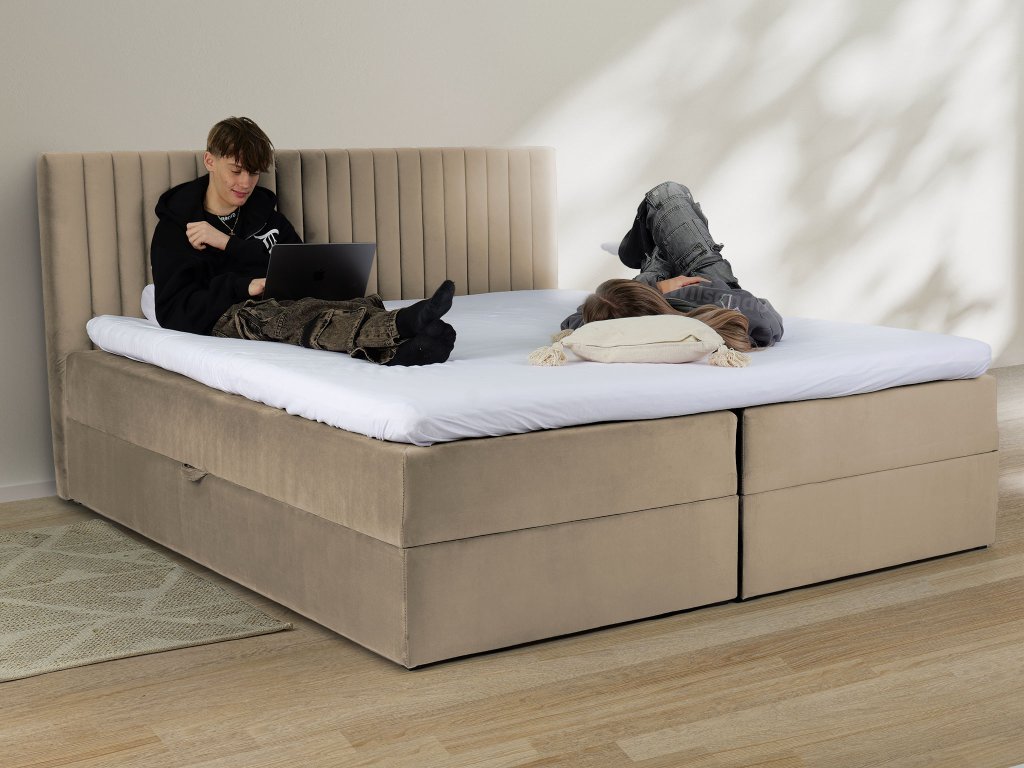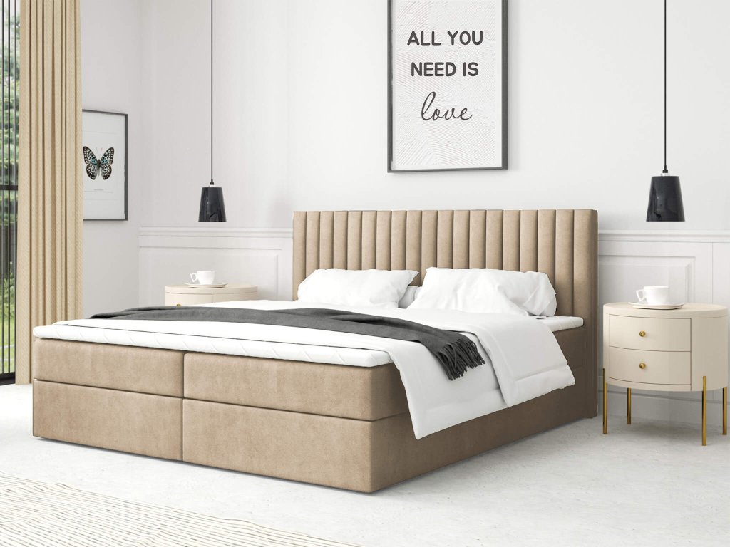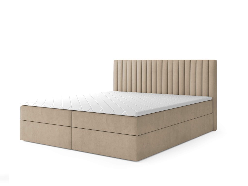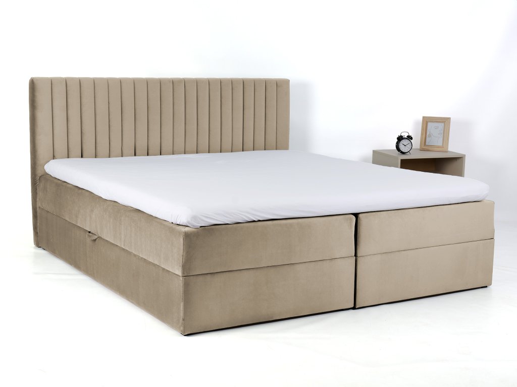 LAMELLA kárpitozott boxspring ágy - bézs