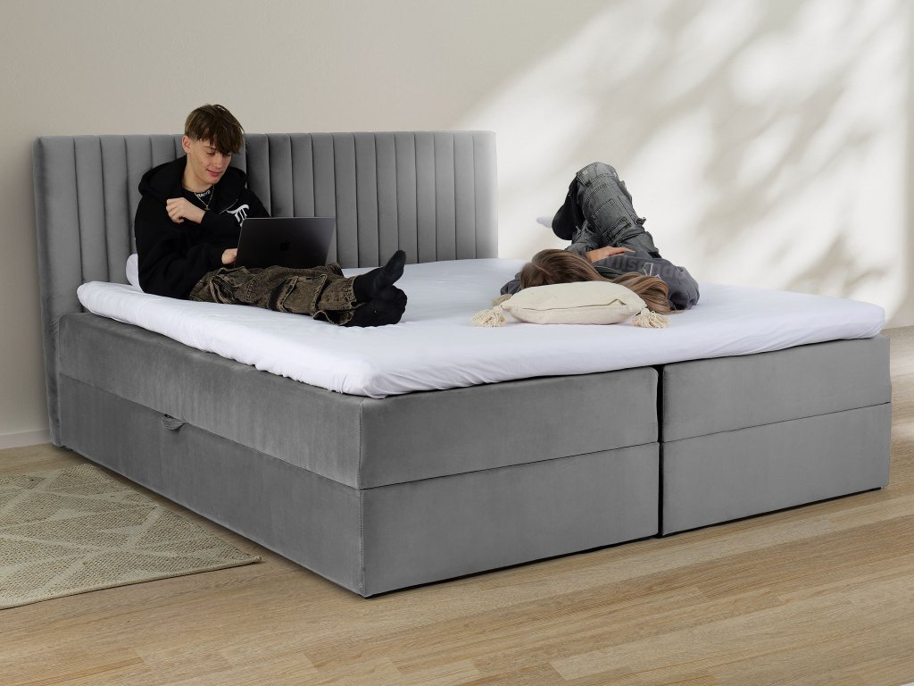 A LAMELLA boxspring kárpitozott franciaágynak köszönhetően élvezheti a pihentető éjszakai alvást egy mozgalmas nap után. A szürke színben készült ágy egy csipetnyi luxust hoz el az Ön hálószobájába és kényelmes fekhelyet biztosít, ahol feltöltődhet az elkövetkezendő napra. Bőséges tárolóhellyel rendelkezik, amely ágyneműtartóként is tökéletesen funkcionál. Az ágykeret tömörfa és laminált forgácslap keverékéből tevődik össze. Az 5 cm vastag tömörfából készült, steppelt fejtámlát T25 hab tölt ki, ezáltal stabil és tartós marad a használat során. A LAMELLA franciaágy beépített ágyráccsal és matraccal is rendelkezik. Az ágybetétet magas pontrugalmasság és ellenálló képesség jellemzi. Tökéletesen alátámasztja a gerincet, a csípőt és a vállakat köszönhetően a 9 zónás bonellrugós kialakításnak.