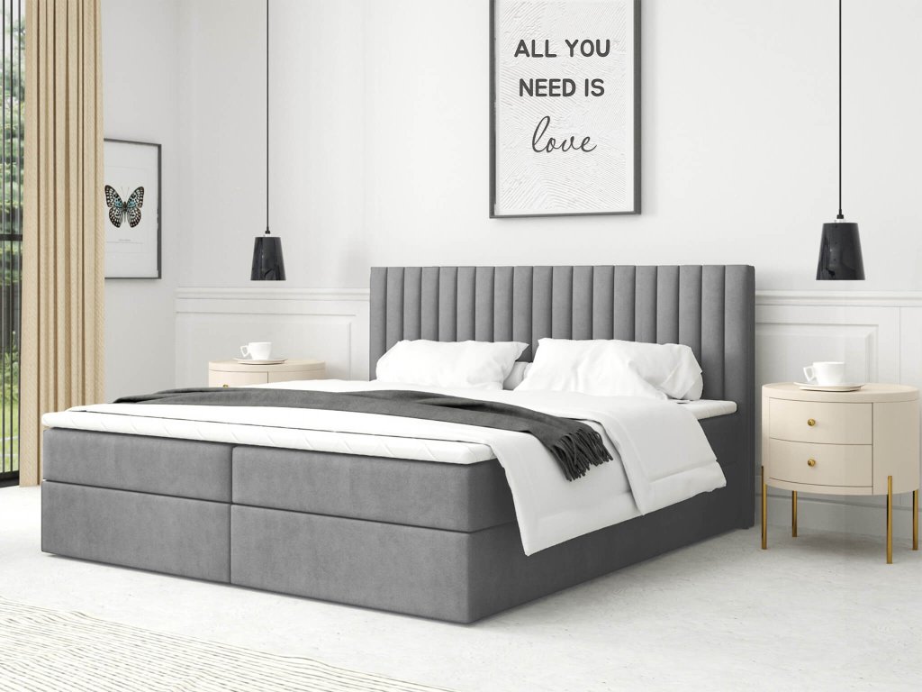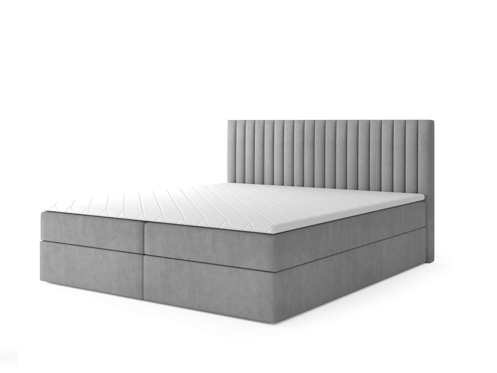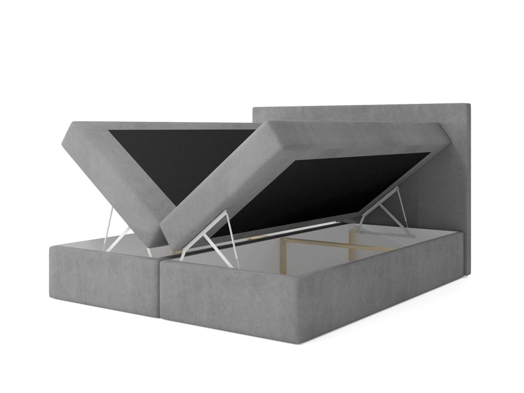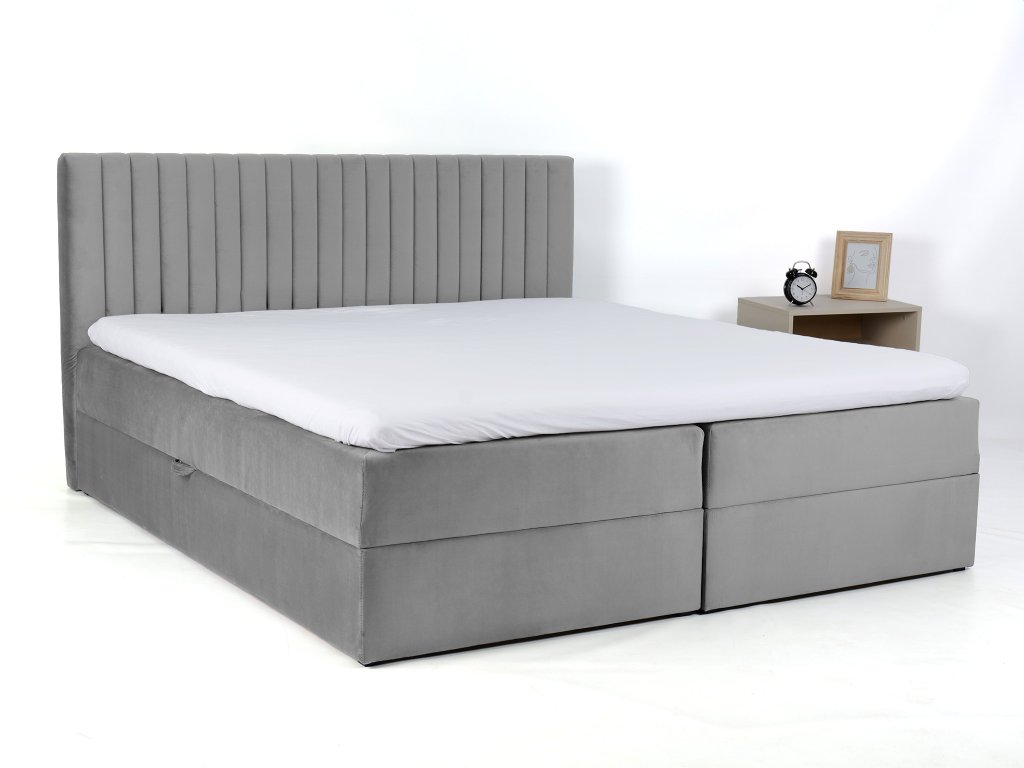 A boxpring ágy puha tapintású minőségi Royal Velvet bútorszövettel van kárpitozva, amely kopásálló és nem bolyhosodik akár 100 000 cikluson keresztül sem. A világosszürke kontinentális ágy eleganciát kölcsönöz minden hálószobának.