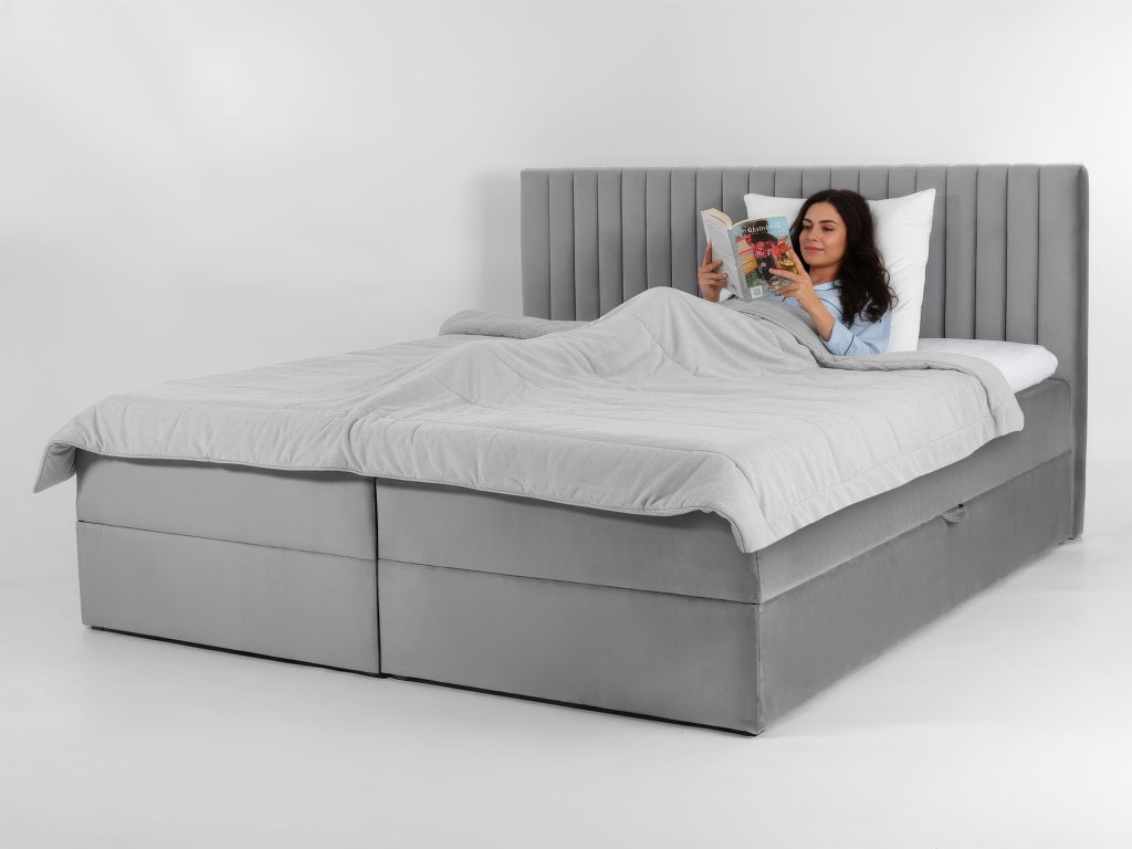 LAMELLA kárpitozott boxspring ágy - szürke