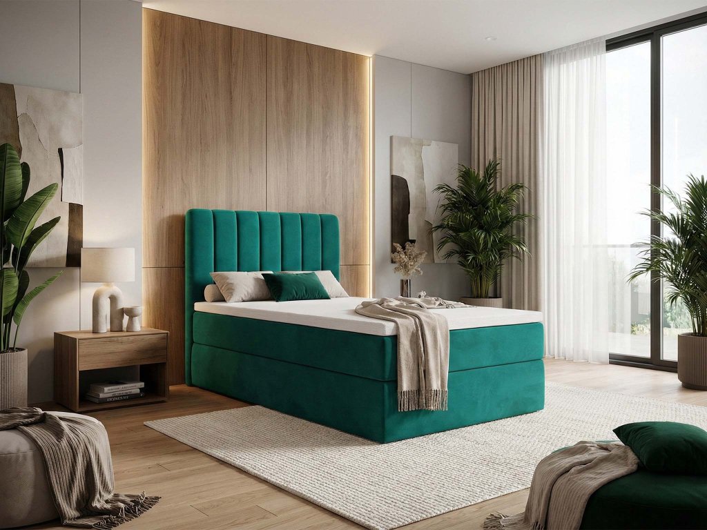 LAMELLA MINI kárpitozott boxspring ágy 90x200 - smaragdzöld