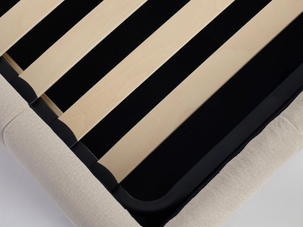 A 90 x 200 cm méretű lamellás ágyrács megbízható alapot biztosít matracához, és hozzájárul a nyugodt, pihentető alváshoz. Összesen 17 enyhén ívelt lamellából áll, amelyek nyárfa és nyírfa kombinációjában készültek, így rugalmasak és egyenletesen osztják el a testsúlyt. A lamellák szélessége 53 mm, vastagsága 8 mm, a köztük lévő távolság pedig 4,5 cm, ami elősegíti a matrac megfelelő szellőzését. Az első lamella 10 cm-re helyezkedik el a kerettől, ami növeli a szerkezet stabilitását.
