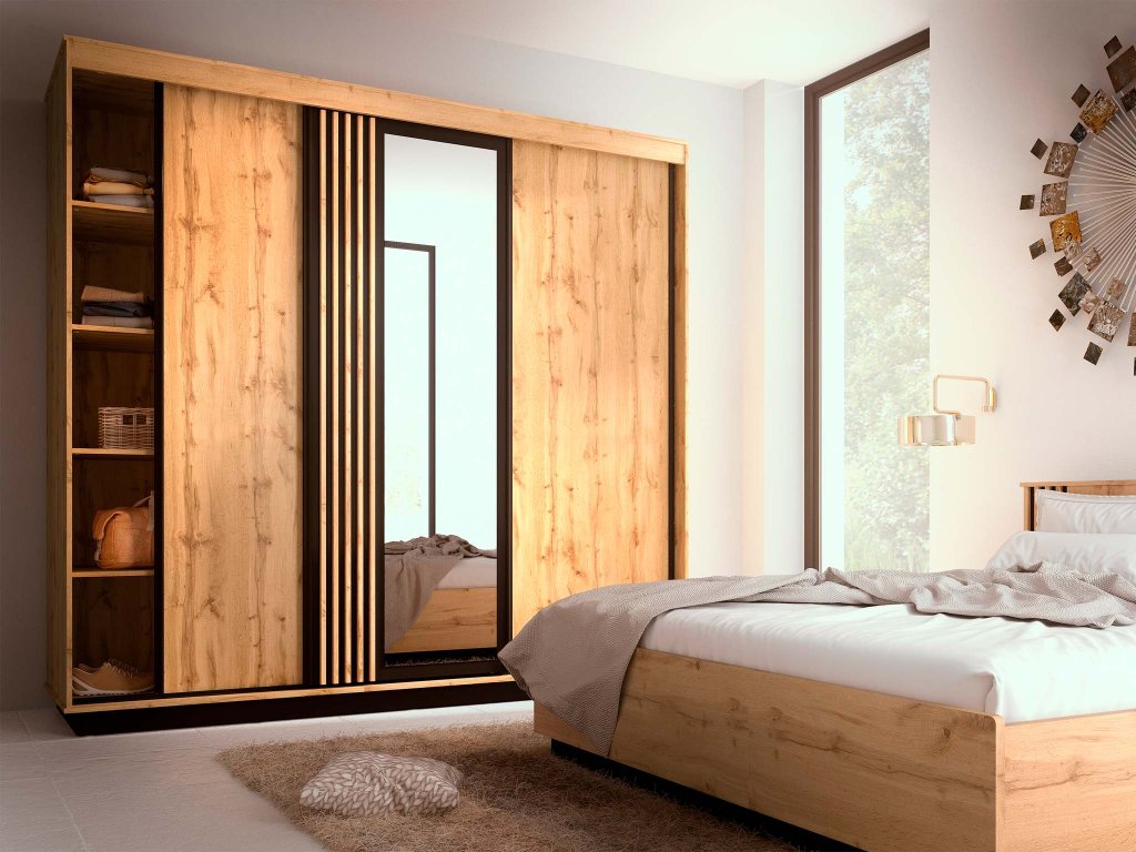 LAMELO 240 tükrös gardróbszekrény - wotan tölgy/fekete