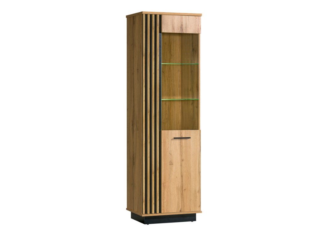 LAMELO üveges vitrin 60 - egyajtós vitrines szekrény melynek ajtaja részben üveges részben lamellás. A belső részében négy darab polcot helyeztek el, melyek közül kettő keményített üveg. A LED világítás nem képezi a vitrin részét.