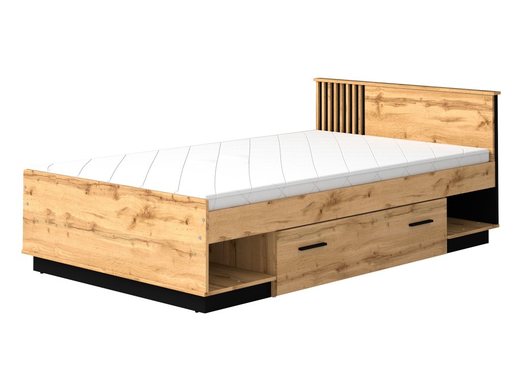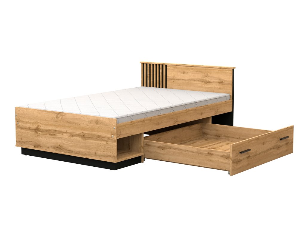 LAMELO egyszemélyes ágy 120x200 ágyneműtartóval - wotan tölgy/fekete