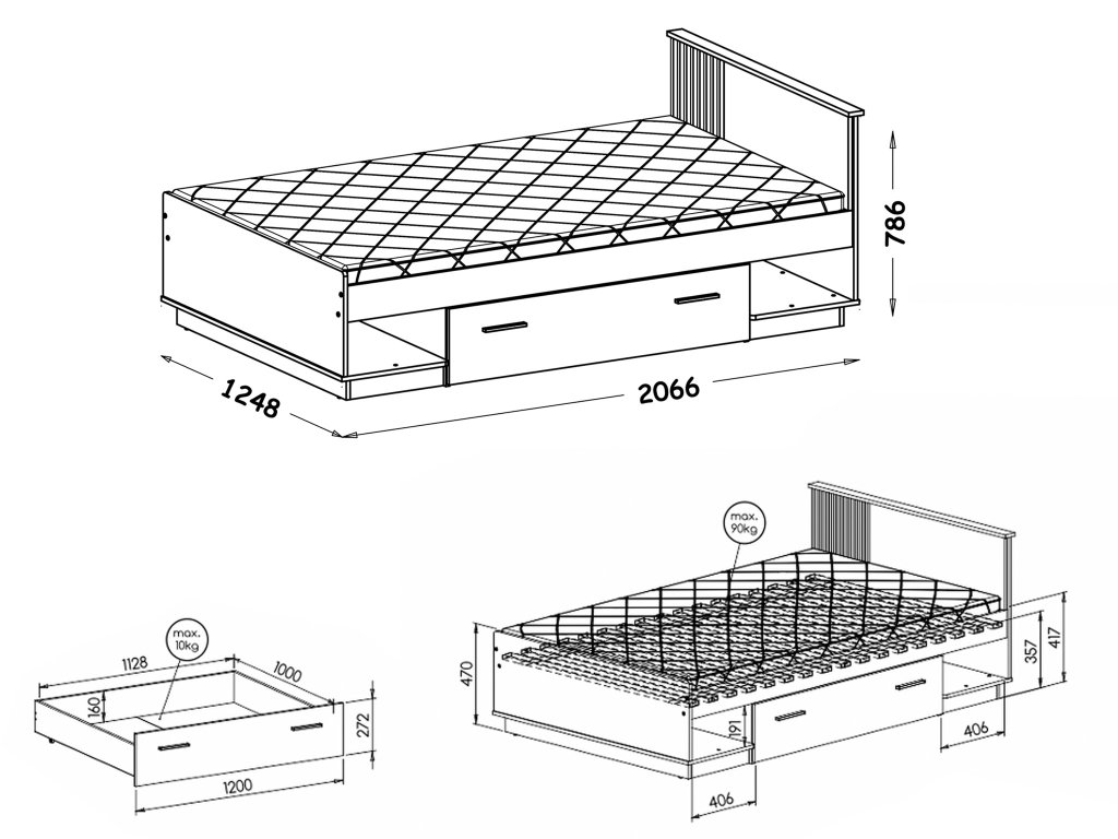 A matrac nem képezi az ágy részét. Válasszon matracot széles kínálatunkból: matracok 120x200 cm