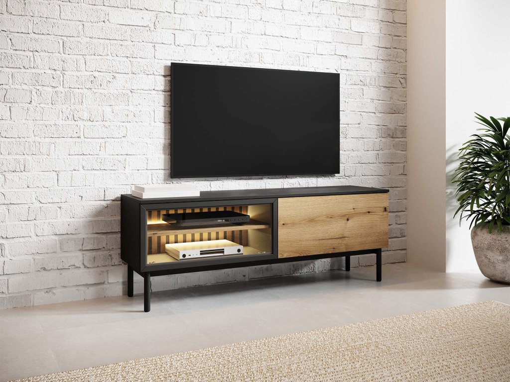 LANGO 150 tévés szekrény - fekete/evoke tölgy