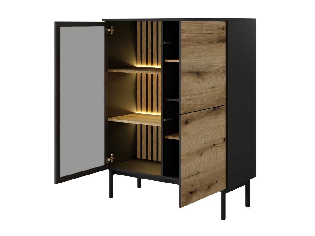 LANGO alacsony vitrines szekrény - fekete/evoke tölgy