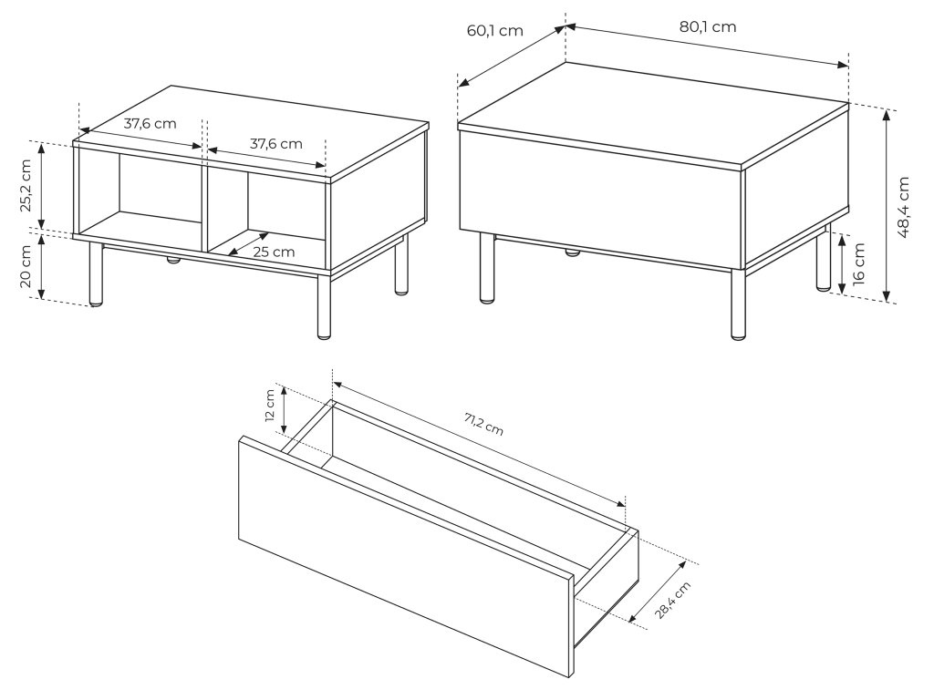 Méret (SzéxMaxMé): 179,9 x 54,8 x 39,4 cm - LANGO dohányzóasztal - praktikus fiókkal, amely helyet biztosít a távirányítóknak.
