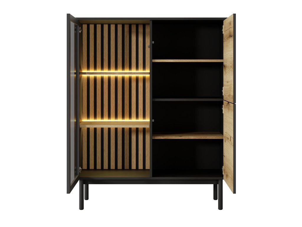 - LANGO alacsony vitrin - a szekrény egyik része füstös edzett üvegből készült vitrinnel rendelkezik LED világítással.