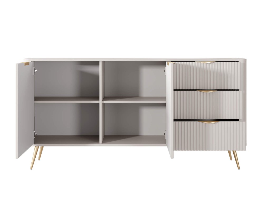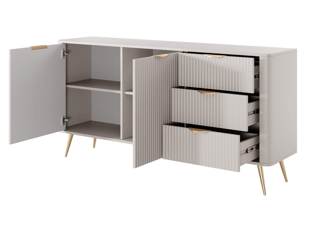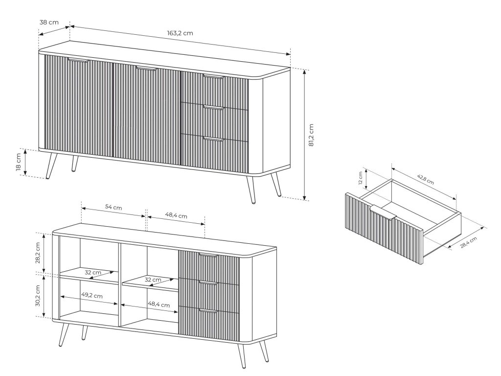 A LANTE 163 2D3S komód időtlen és elragadó bútorelem bőséges tárolóhellyel. Ez a sifonér kitűnően kiegészíti a nappalit, de akár a hálószobában is helyet kaphat. Dobja fel otthona hangulatát és ejtse ámulatba vendégeit a LANTE elemes nappali bútorokkal. Töltse meg a nappali terét stílussal és eleganciával. Az iratok és dokumentumok tárolására 3 tágas fiók szolgál, míg a nagyobb tárgyak számára két polcos szekrény áll rendelkezésre. A komódon fényképeket vagy dísztárgyakat is elhelyezhet.