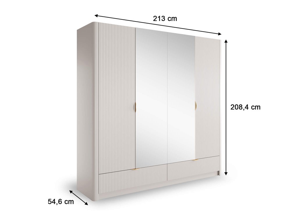 Méret (SzéxMaxMé): 63,2 x 55,3 x 38 cm - LANTE H ruhásszekrény - nagy gardróbszekrény tükörrel
