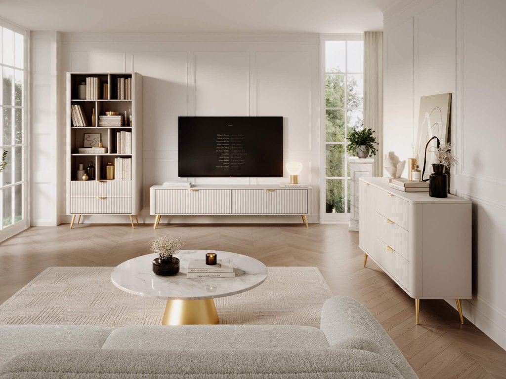 Üdvözölje otthonában a luxust és a praktikumot a LANTE szekrénysorral. Ez a modern bútorkollekció ötvözi az elegáns designt a maximális funkcionalitással, és így ideális teret teremt az Ön mindennapi igényeihez. A LANTE nappali fal azonnal magára vonja a figyelmet barázdált, kellemes bézs színű előlapjával és ízléses arany lábaival. A bútorok hátlapja bézs színű HDF lapból készült. Letisztult, minimalista megjelenésével tökéletesen illeszkedik bármely belső térbe. A LANTE elemes nappali bútorok rengeteg tárolóhelyet kínálnak könyvei, dekorációi, elektronikai eszközei és egyéb személyes tárgyai számára. A polcoknak, szekrényeknek és fiókoknak köszönhetően mindig mindent rendezetten és kéznél tarthat. Tegye nappaliját olyan hellyé, ahol igazán otthon érzi magát. Alakítsa át lakóterét otthonos és modern menedékké, ahová minden nap szívesen tér vissza.