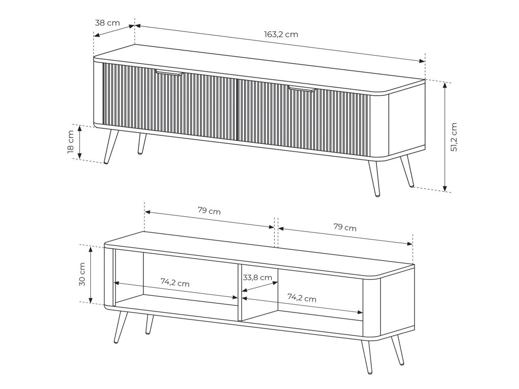 - LANTE 163 2D TV szekrény: két tágas, lenyíló szekrényt kínál tárolóhelyként. Méret (SzéxMaxMé): 163,2 x 51,2 x 38 cm