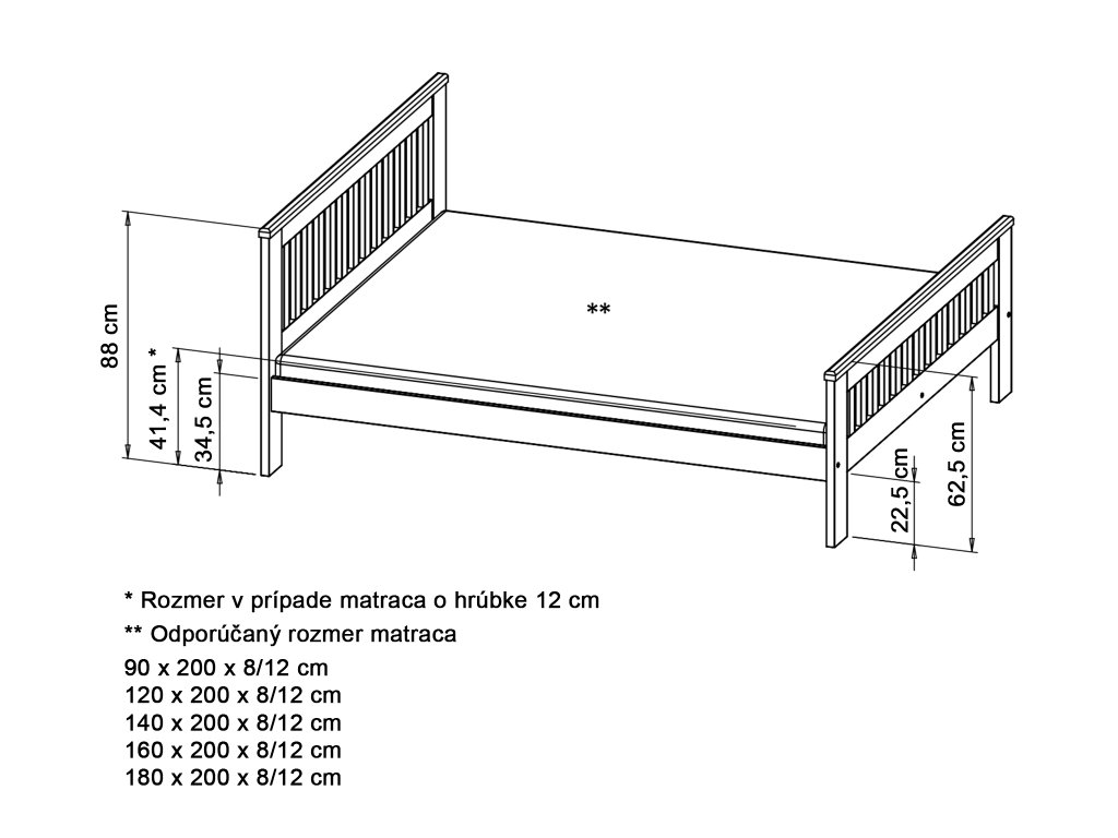 A matrac NEM része az ágynak. A matrac ajánlott magassága legalább 8 cm.