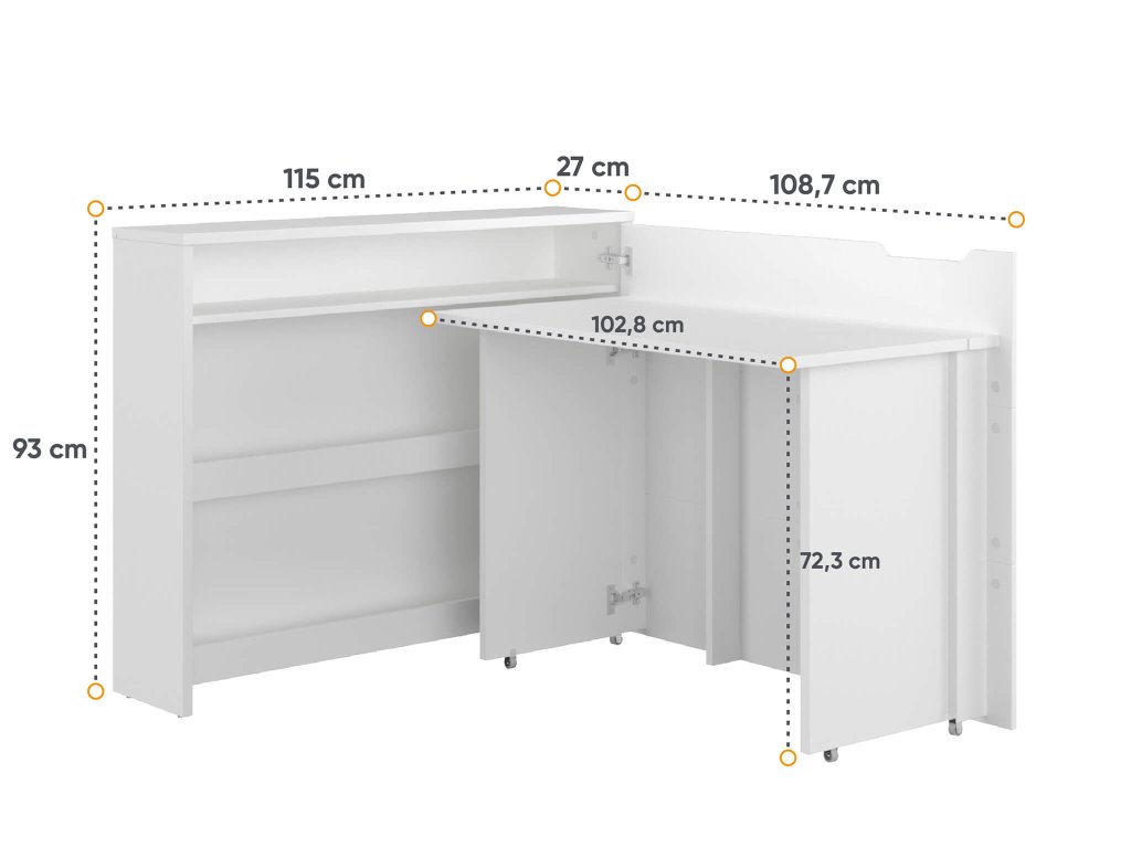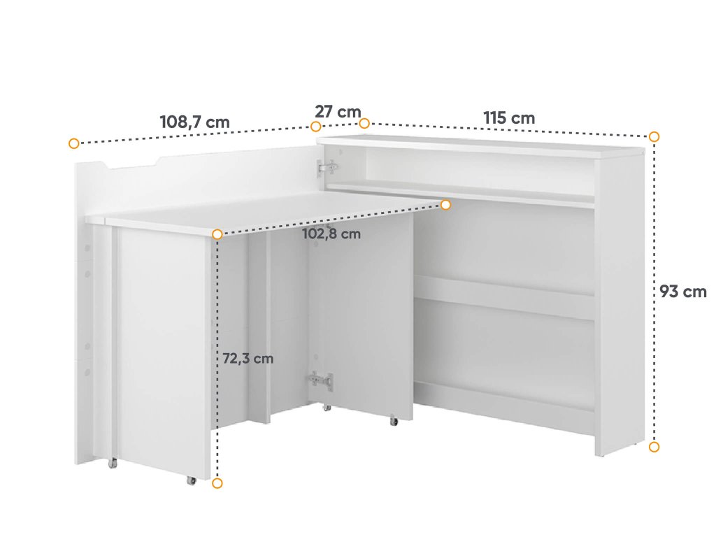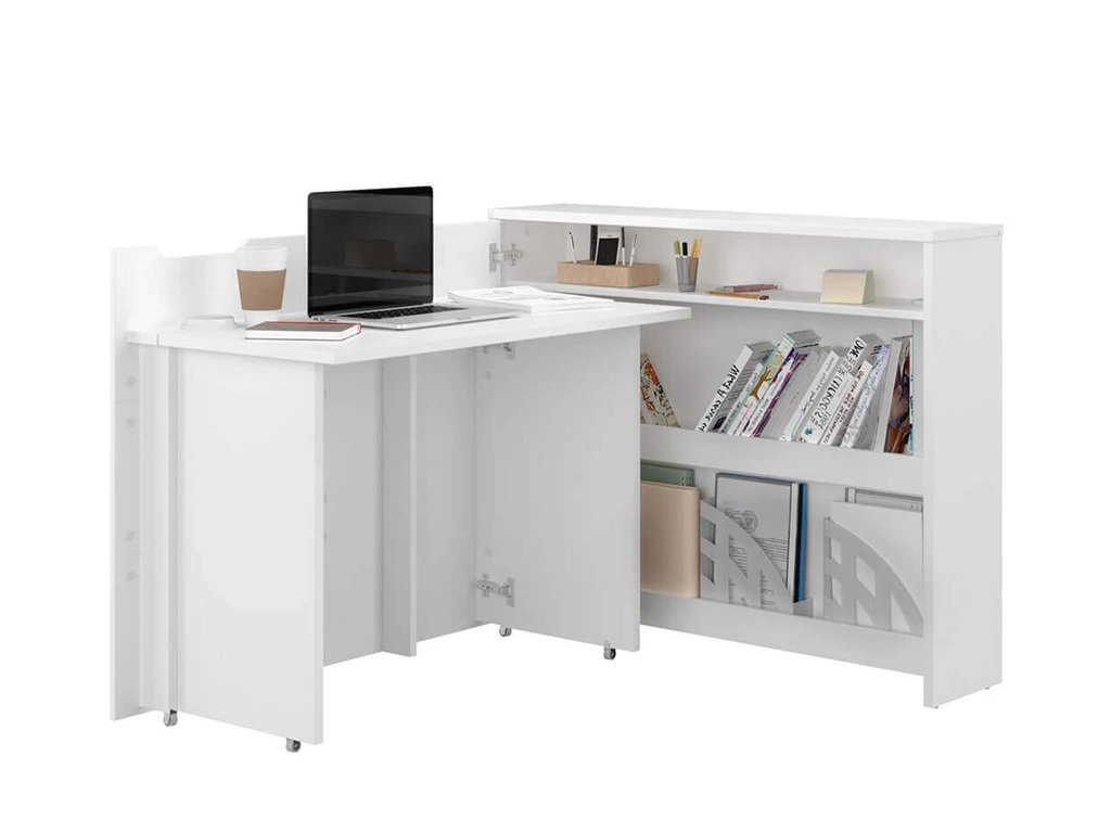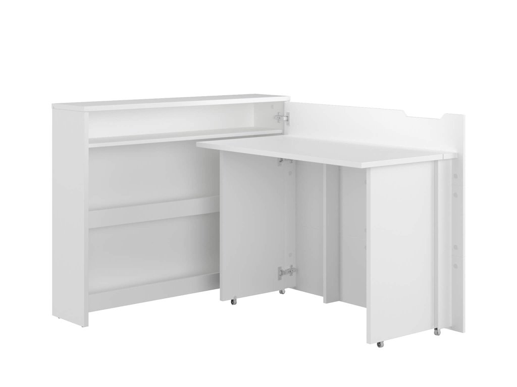 A kihúzható íróasztal három színváltozatban elérhető. Két változat közül választhat, az egyik jobb oldalra nyílik a másik pedig bal oldalra. Így olyat választhat, amely így a legjobban beilleszthető majd a lakásba. A polcos rész nem mozdul, ebben három polc helyezkedik el. A dolgozóasztal minőségi laminált bútorlapból készül ABS élekkel biztosítva. A kihúzható rész kerekeken mozgatható, így egyszerű és könnyű a vele való manipuláció. Nem kell már mást tennie csak egy kényelmes irodai széket vagy étkezőszéket választania és egy praktikus dolgozó sarok már készen is áll.