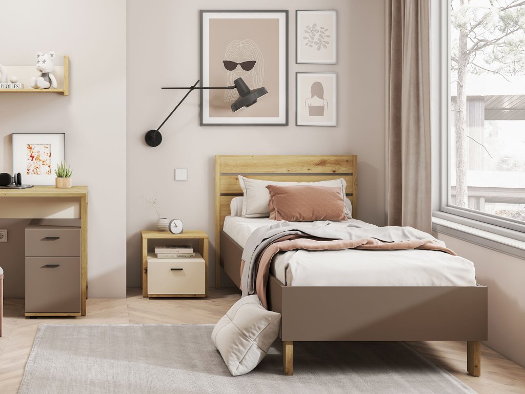 A 90x200-as LENNY egyszemélyes ágy ideális megoldás gyerek- vagy diákszobába. Univerzális dizájnjának köszönhetően ízlésesen illeszkedik mind lányos, mind fiús terekbe. A még nagyobb kényelem érdekében kiegészíthető kárpitozott fejtámlával, amely kellemesebbé teszi az esti olvasást vagy a filmnézés közbeni pihenést. Minőségi kidolgozása és időtlen megjelenése ideális bútordarabbá teszi, amely kényelmet és stílust egyaránt kínál.