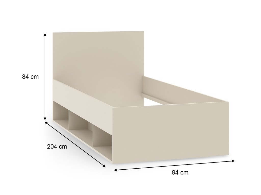 Az egyszemélyes Lens ágy ideális választás gyerekszobába vagy diákszobába. Kasmírszínű kivitelezése modern és időtálló megjelenést kölcsönöz, így könnyen összehangolható a helyiség többi bútorával. Az ágy minőségi, 16 mm vastag laminált forgácslapból készül, látható ABS élzárással, ami védi a felületet a sérülésektől és növeli az élettartamot. A hátoldala élzárás nélkül készült. Az ágy stabilitását fekete csúszásgátló betétekkel ellátott műanyag lábak biztosítják, amelyek könnyű mozgatást tesznek lehetővé, és védik a padlót a karcolásoktól.
