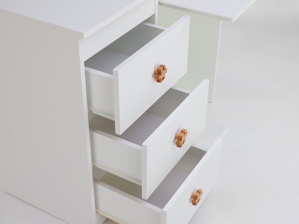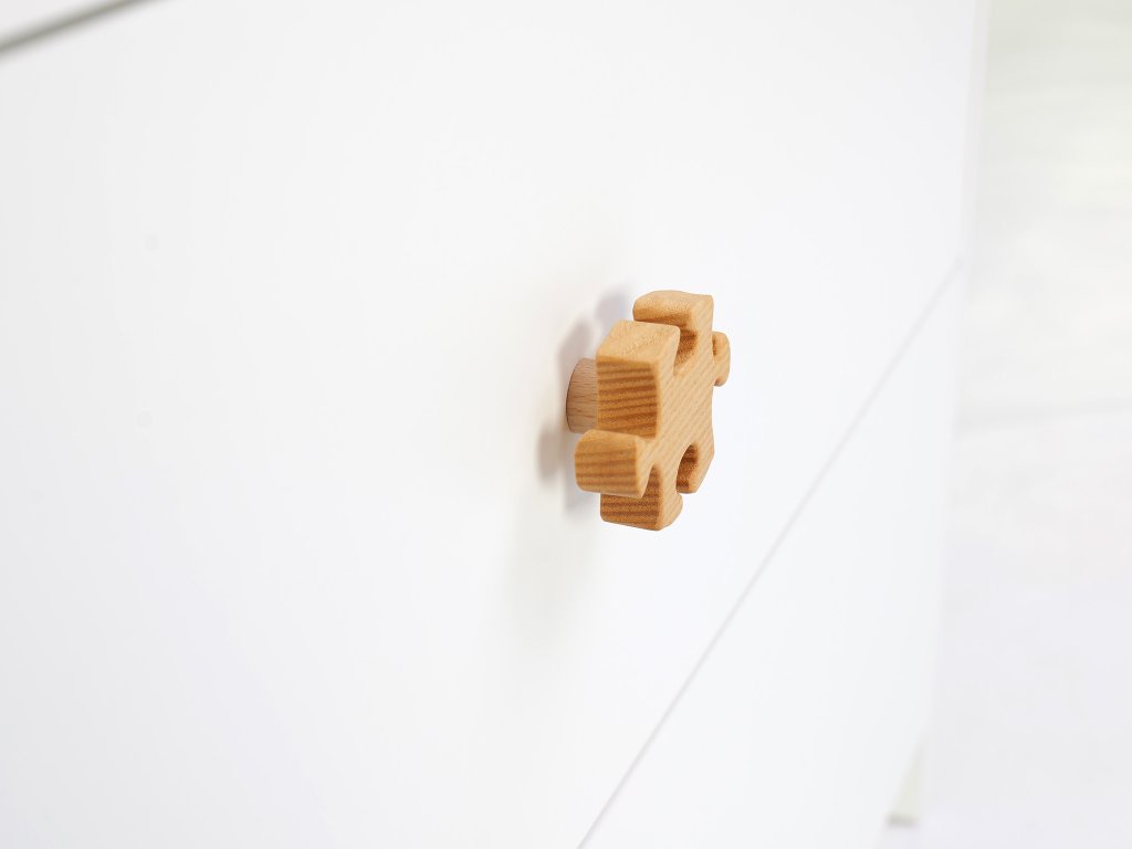 A bútor kézzel készült puzzle alakú fogantyúkkal együtt kapható. Minden egyes fogantyú handmade, tehát kézzel faragják ki, ami azt jelenti, hogy az egyes darabok mérete és formája valamellyest eltérhet. A fogantyúkat megtalálja kínálatunkban külön is.