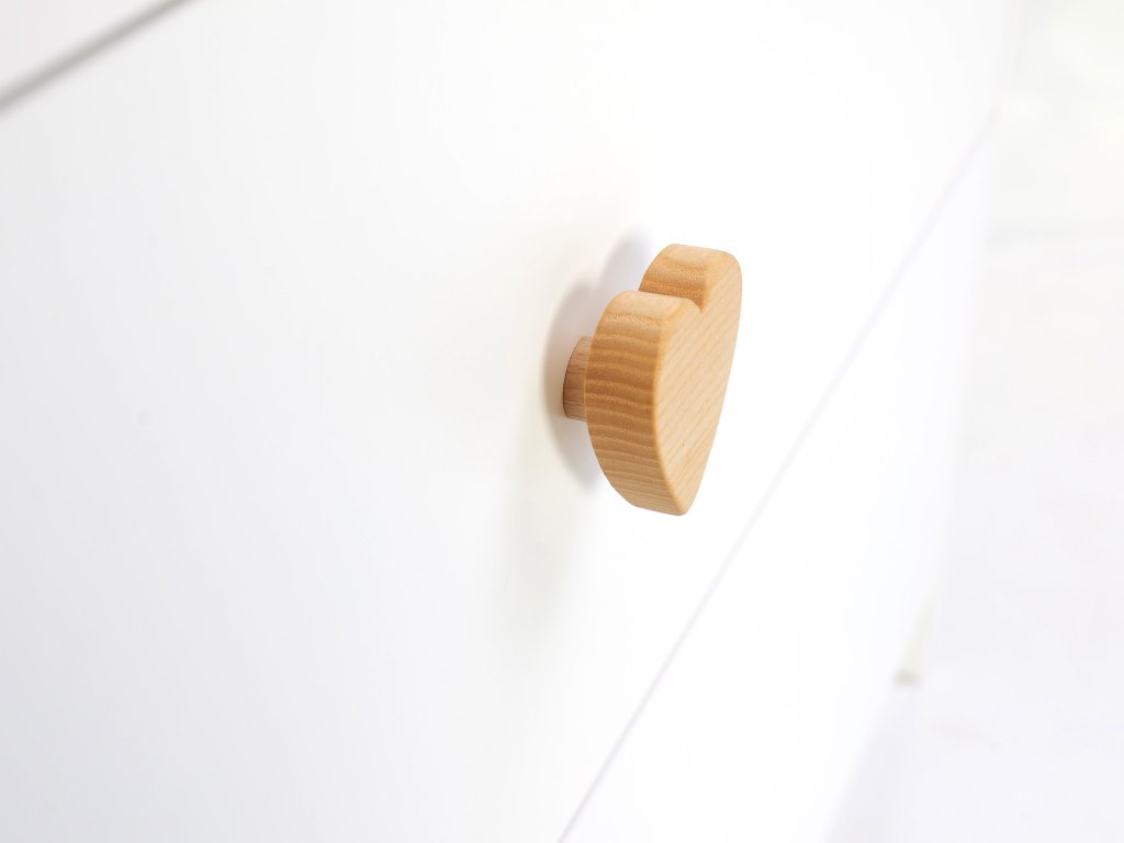 A bútor kézzel készült szív alakú fogantyúkkal együtt kapható. Minden egyes fogantyú handmade, tehát kézzel faragják ki, ami azt jelenti, hogy az egyes darabok mérete és formája valamellyest eltérhet. A fogantyúkat megtalálja kínálatunkban külön is.