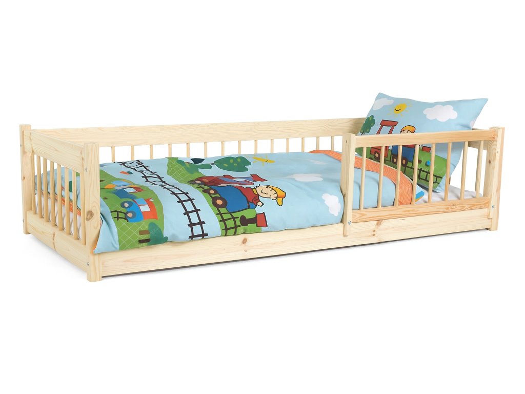 Lesanka gyerekágy 90x200 természetes fenyő árnyalatban ötvözi a természetes fa harmóniáját a funkcionalitással és a gyermekek biztonságával. Szerkezete közvetlenül a földön helyezkedik el, ami maximális stabilitást biztosít, és csökkenti az éjszakai mozgás közbeni leesés kockázatát. Ez az alacsony kialakítás a Montessori filozófiából ered, amely támogatja a gyermek önállóságát, és megtanítja őt szabadon felfedezni saját terét.