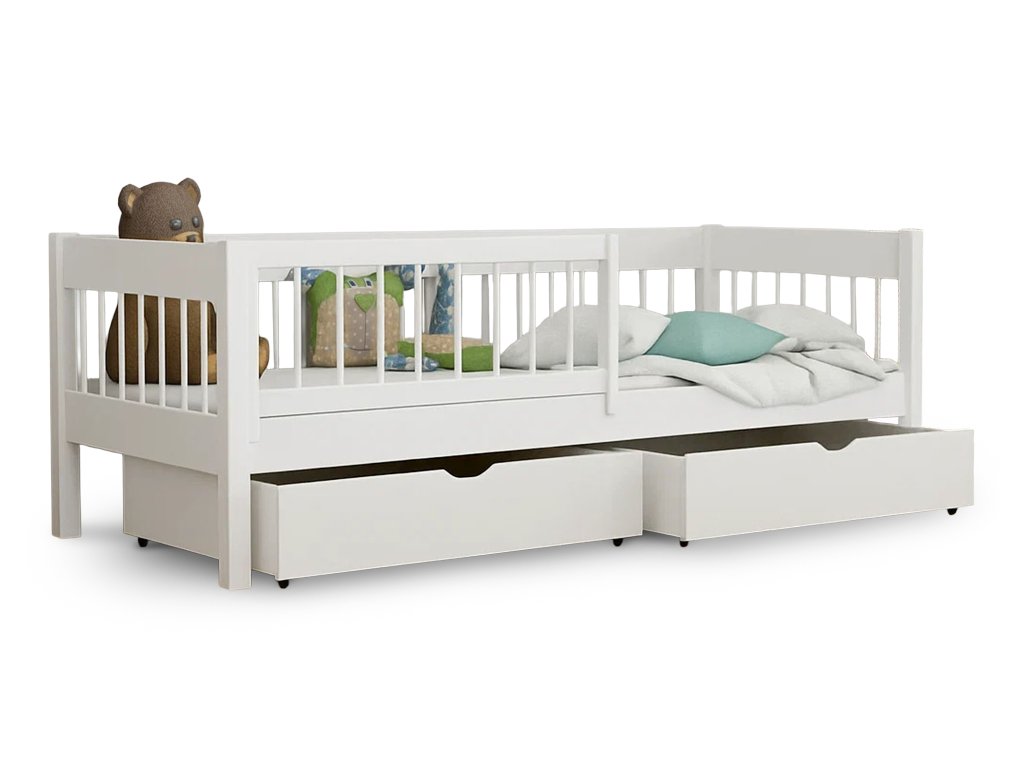 LESZANKA gyerek fa montessori ágy ágyneműtartóval 90x200 - fehér
