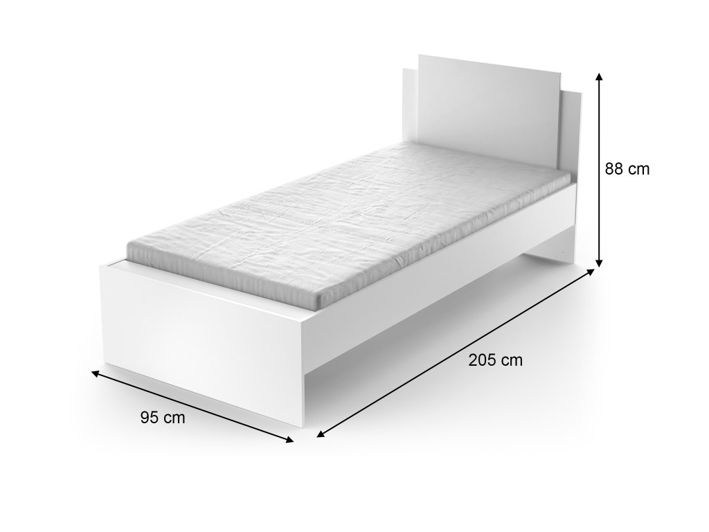 Az ágy elegáns magas fejtámlával rendelkezik és kiváló minőségű 18 mm vastag strapabíró laminált bútorlapból készült. A fekhely teherbírása 100 kg, így nemcsak gyerekek, hanem tinédzserek számára is megbízható választás. Az ágy kivehető belső deszkalappal is rendelkezik, amely lehetővé teszi a fekhely hosszának méretre igazítását – a deszkalap behelyezésével egy 90x190 cm-es fekhelyet kap, nélküle pedig egy 90x200 centimétereset. Mindkét esetben 90x200 cm ágyrácsra van szükség.