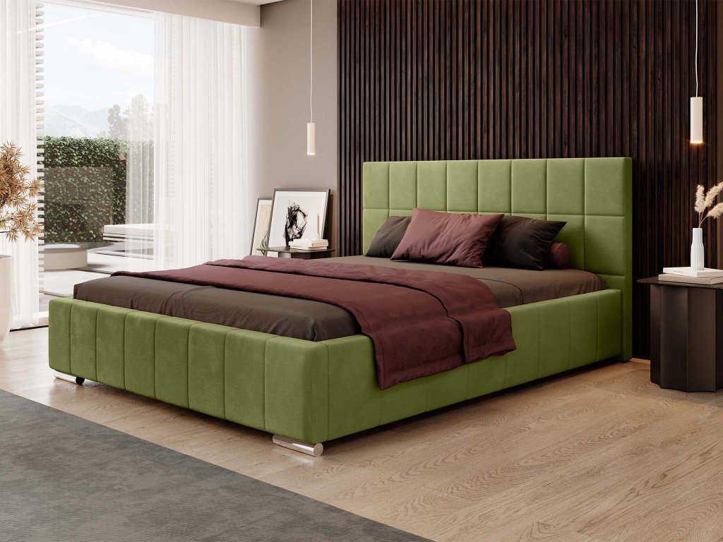 LILY kárpitozott franciaágy ágyneműtartóval 140x200 - világoszöld