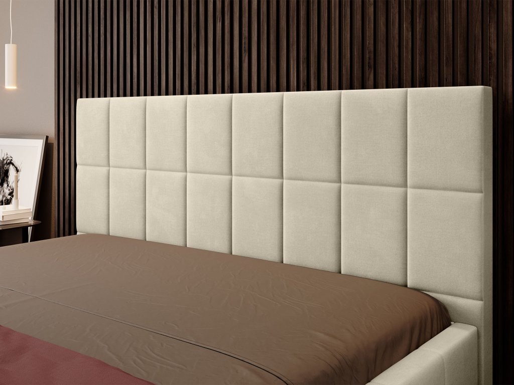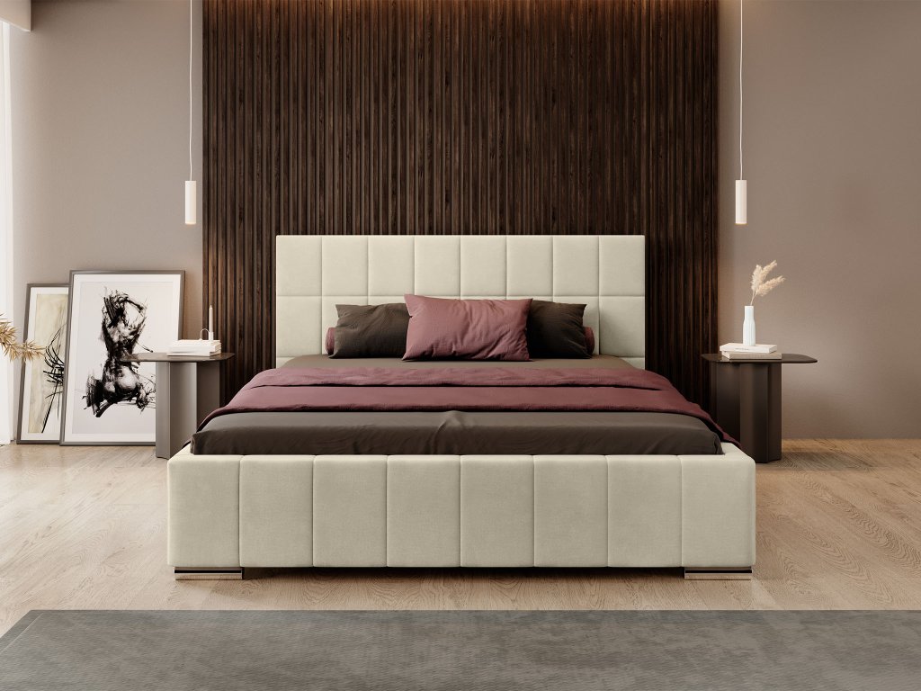 Ha a legnagyobb franciaágyat keresi, ez a Lily modell 180x200 cm-es felülettel krémszínű kivitelben ideális választás egy tágas hálószobába. Az ágy világos színe tisztaságot és eleganciát kölcsönöz a belső térnek. A minőségi kárpitozás és a magas fejrész és az alapzat precíz varrásai jelentik a fő dizájnelemet. Az ágy robusztus és stabil fa és laminált lapos szerkezetéből készült, maximális teherbírásra tervezve. Az oldalfalak lábakkal biztosítják a kényelmes felkelést és az ágy luxus megjelenését.