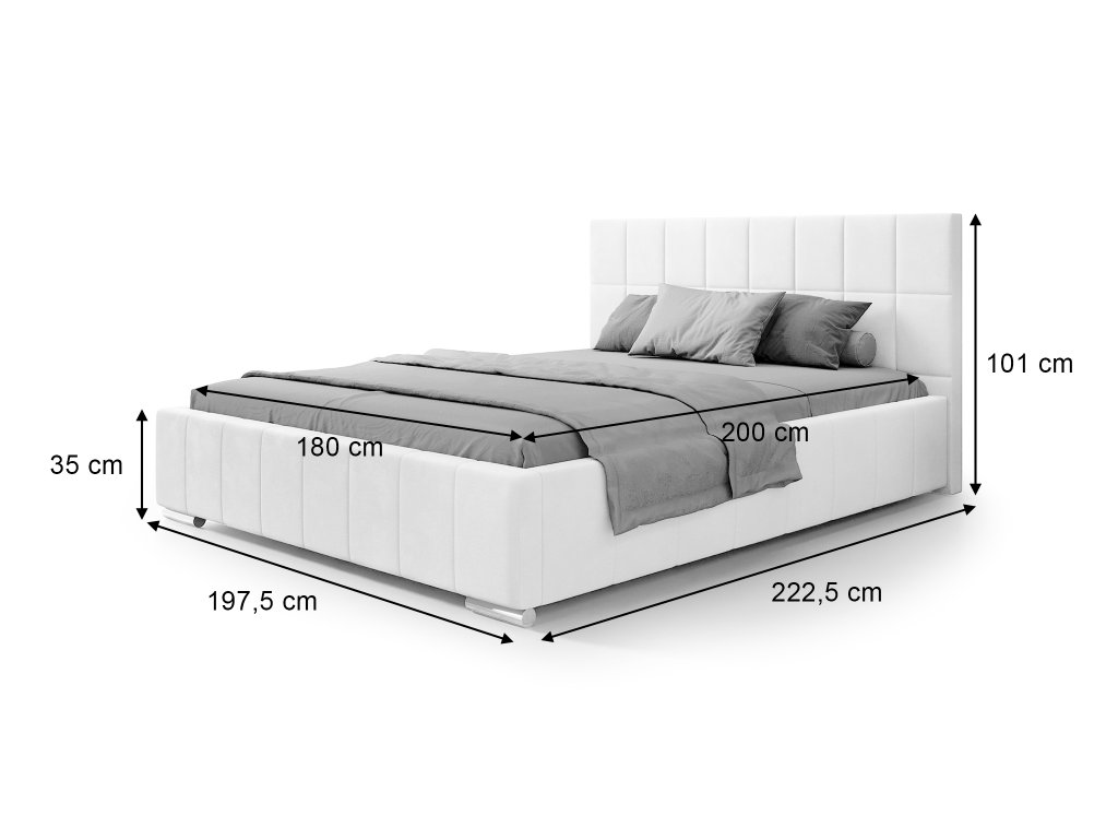 Bemutatjuk a kétszemélyes ágyak kategóriájának zászlóshajóját – 180x200 Lily ágy határozza meg a teret és kényelmet. Ez a világosszürke tágas ágy azok számára készült, akik maximális helyet és kompromisszum nélküli minőséget igényelnek. A magas, masszív fejvég dekoratív varrással nemcsak a hálószoba dísze, de egy kényelmes támasz is, körülbelül 12 cm vastagsággal. Az ágy szilárd váza fehér laminált lap és fa kombinációjából készült, ami rendkívüli stabilitást biztosít ennek a kárpitozott ágynak. Az elegáns krómozott lábak modern csillogást adnak hozzá.