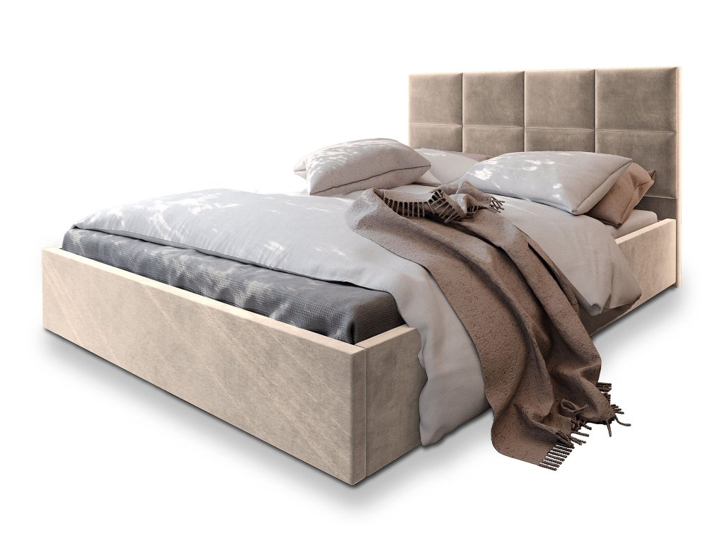 LIMENA kárpitozott franciaágy ágyneműtartóval 140x200 – bézs