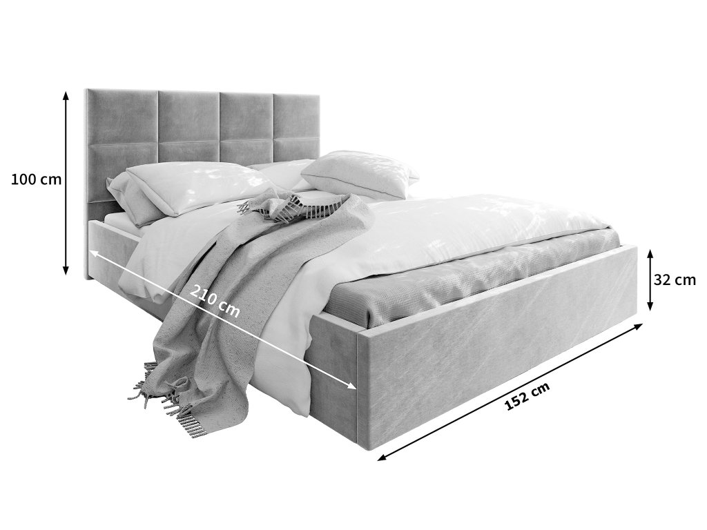LIMENA kárpitozott franciaágy ágyneműtartóval 140x200 – világosszürke