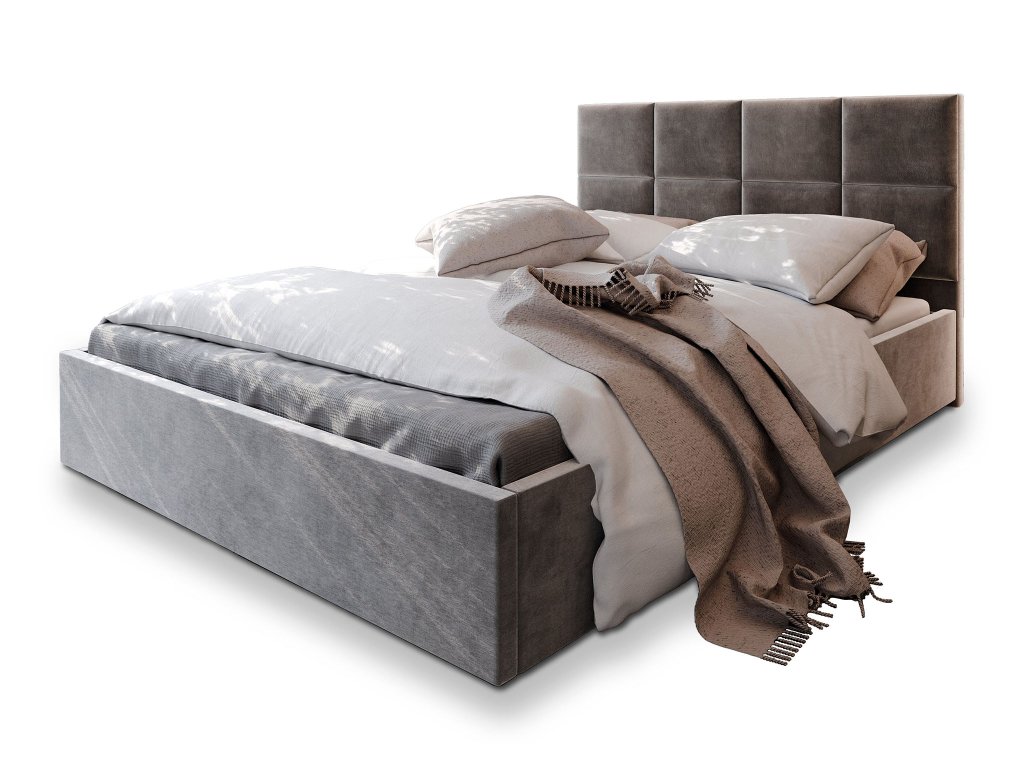 LIMENA kárpitozott franciaágy ágyneműtartóval 160x200 – világosszürke