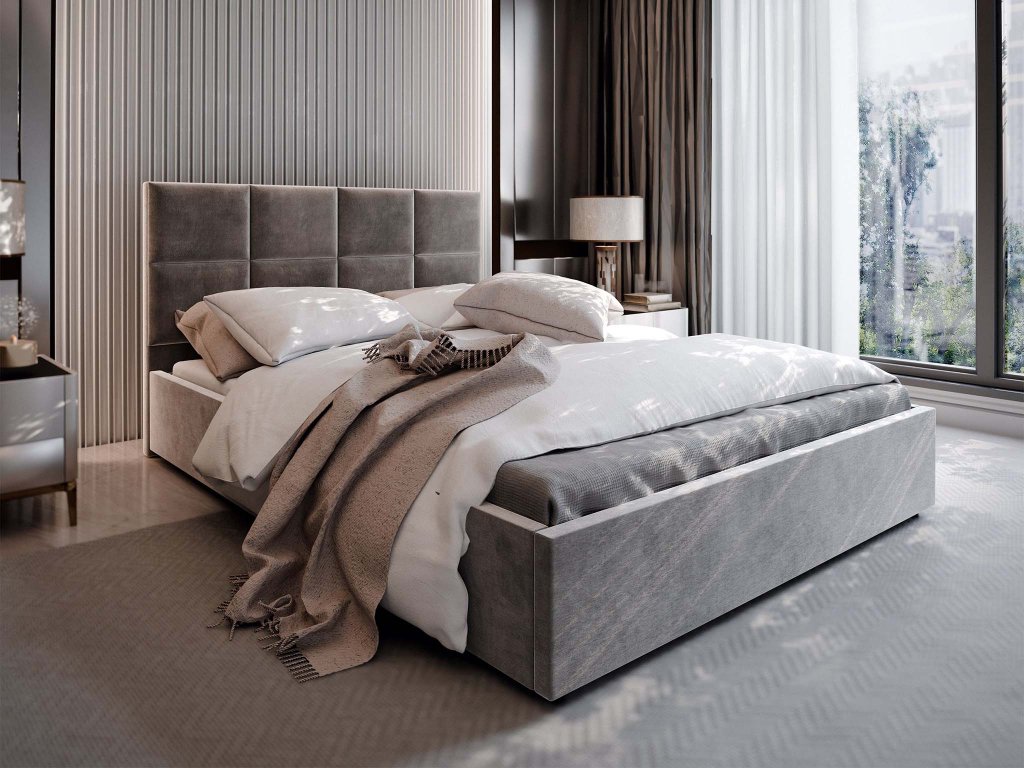 LIMENA kárpitozott franciaágy ágyneműtartóval 180x200 – világosszürke