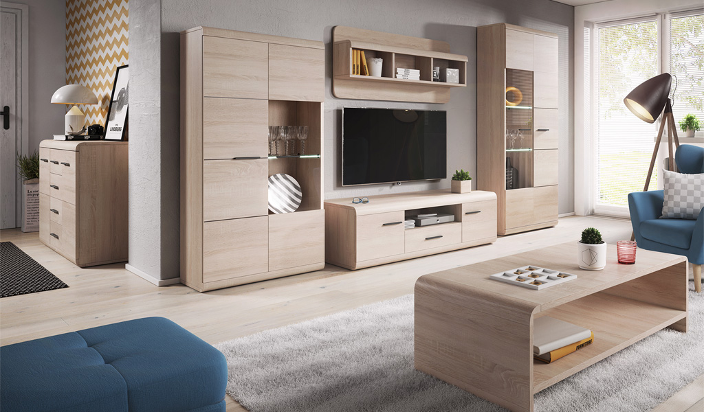 A LINK nappali bútor garnitúra már első pillantásra meggyőz mindenkit a minőségéről. Minden elem 16 és 22 mm vastag laminált bútorlapból készült, amely ellenáll a karcolásoknak, a nedvességnek és a magas hőmérsékletnek. A bútorokra lekerekített élek jellemzők, valamint 4 mm vastag üvegpolcok, az ajtóknál pedig edzett biztonsági üveg került felhasználásra. A kollekció Sonoma tölgy színben, 3D-s faerezetes felülettel készült.