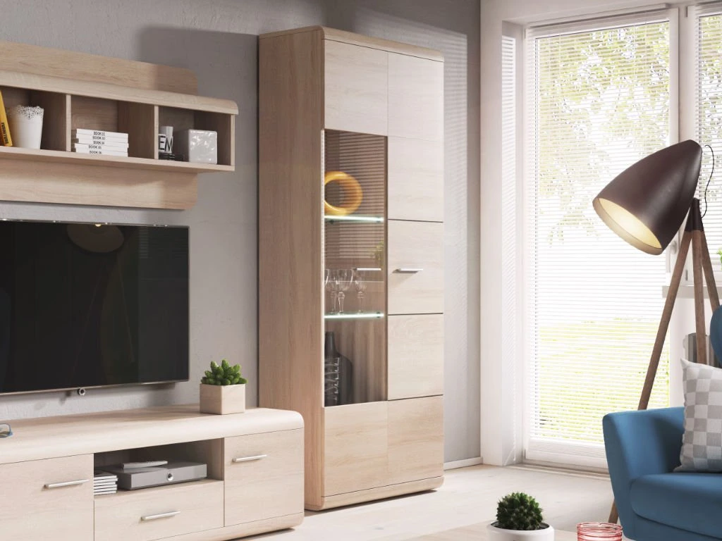 A LINK kollekcióba tartozó bútorokon már első látásra látszik, hogy minőségi bútor darabok. Minden elemük minőségi laminált 16 és 22 mm vastag bútorlapból (DTD) készül, amely ellenáll a karcolásoknak, a nedvességnek és magas hőmérsékletnek. A bútor lekerekített élekkel és 4 mm vastag üveg polcokkal rendelkezik. A bútorok ajtajain kemény biztonsági üveg található. A bútor szett darabjai sonoma tölgy színben készülnek 3D fa struktúrával. A kollekció több bútor elemből áll, amelyeket ízlése szerinte kombinálhat. A minőségi anyag, az időtálló dizájn és az elegáns kialakítás minden belső térbe életet lehelnek. A magas ellenálló képességének köszönhetően évekig áll majd az Ön szolgálatában.