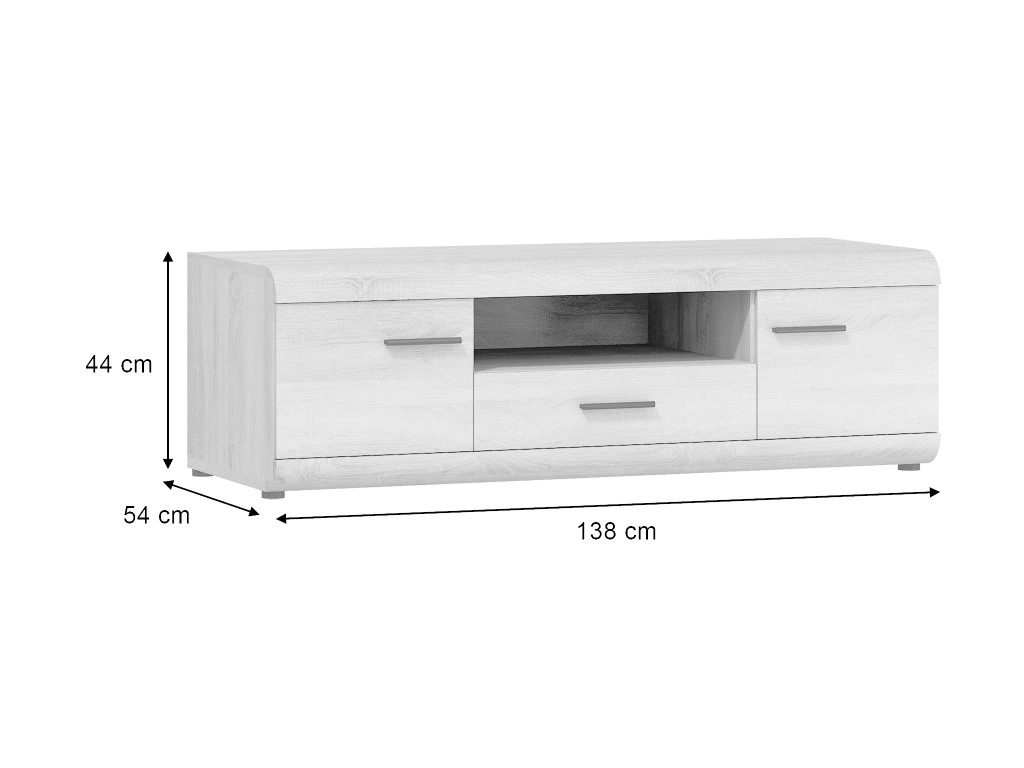 LINK tévés szekrény, amely egy nyitott polccal, egy fiókkal és két kis szekrénnyel rendelkezik. A TV asztal tökéletes választás a nappaliba.