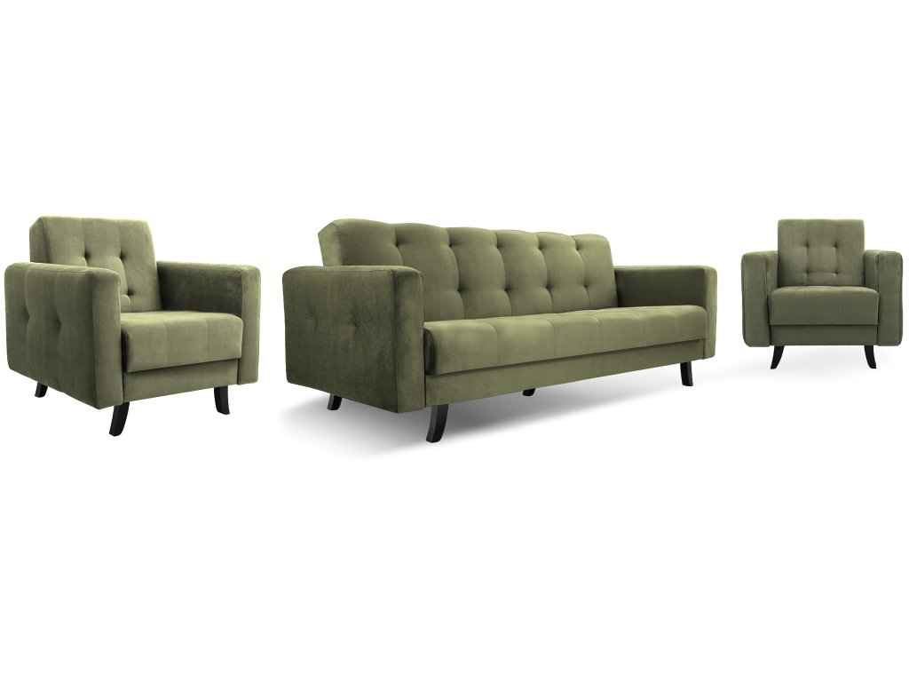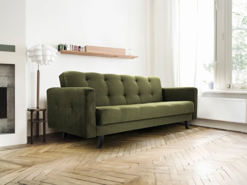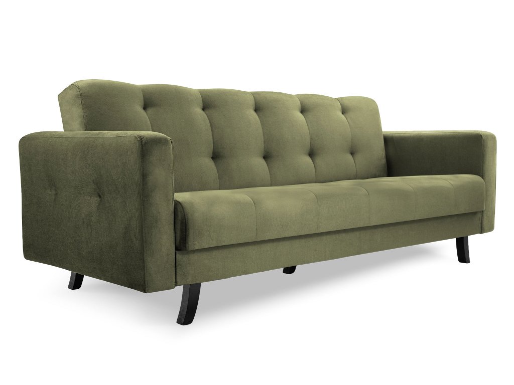 LISSZABON ágyazható kanapé ágyneműtartóval - olivazöld