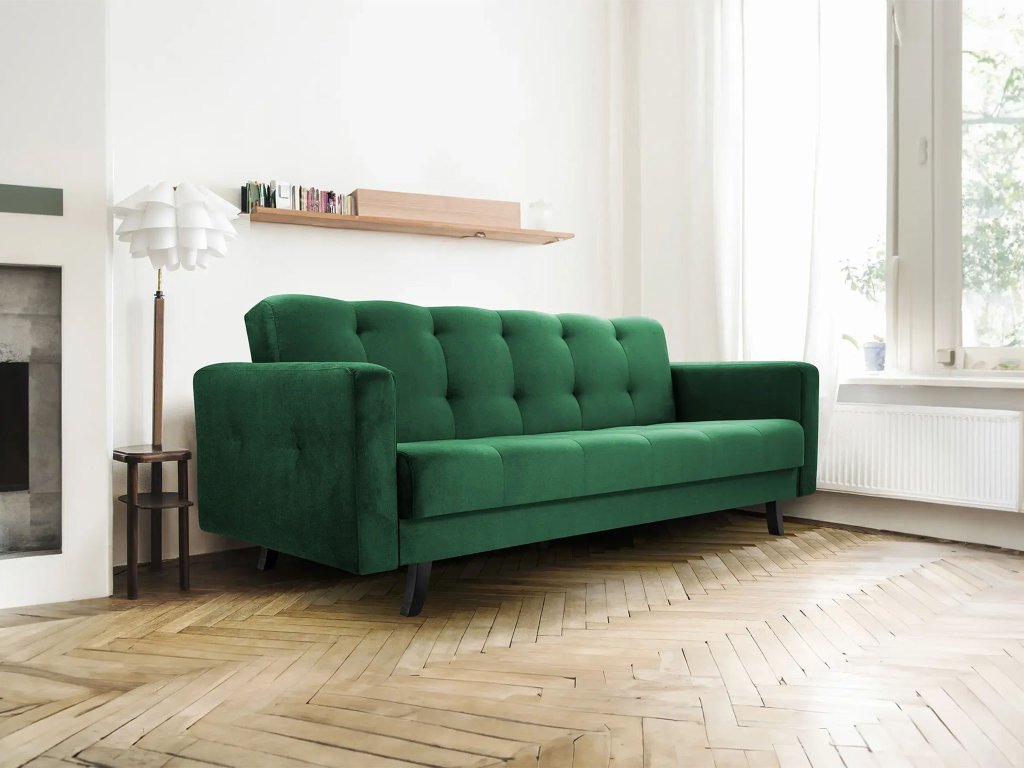 LISSZABON ágyazható kanapé ágyneműtartóval - zöld