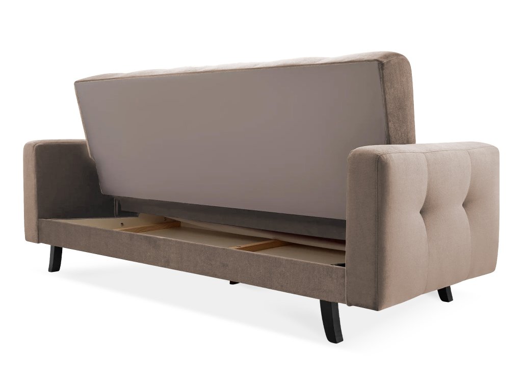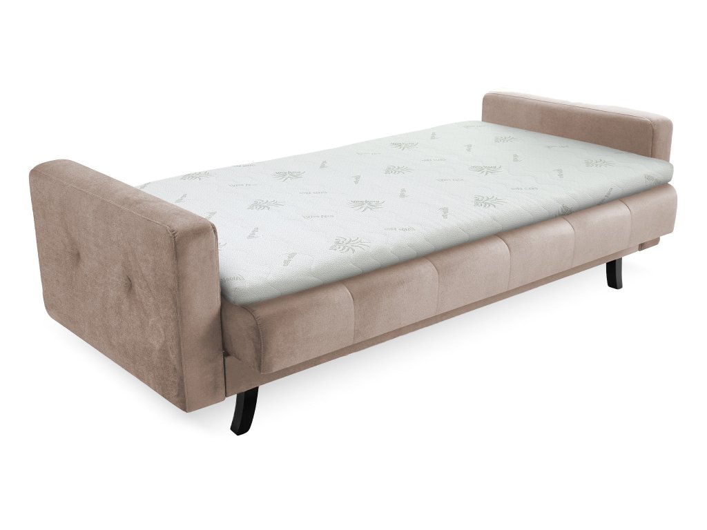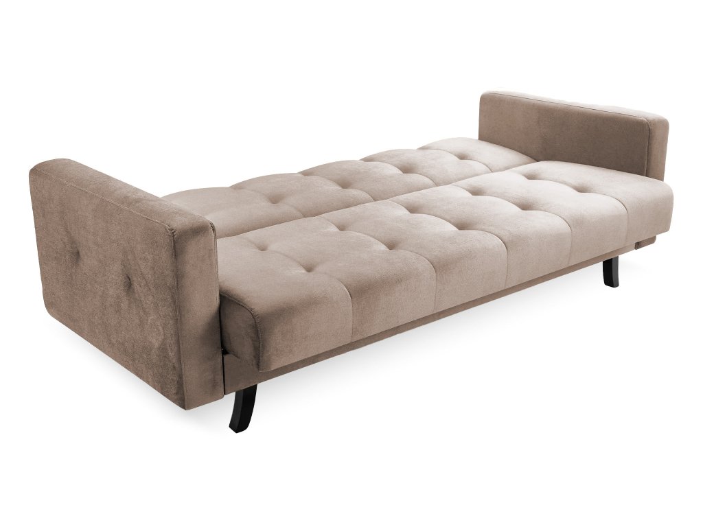 Engedje meg, hogy bemutassuk a Lisszabon kihúzható kapanét, amely egy igazán sokoldalú és praktikus bútordarab. A kanapéágy elegáns krémszínű velvet szövettel kárpitozott, amely nem csak gyönyörű kinézetet kölcsönöz a bútornak, de igazán ellenálló a sérülésekkel szemben is. A széthúzható kanapé szép steppeléssel ellátott az ülőfelületén és a háttámlán is, melynek köszönhetően az egész nagyon elegáns hatást kelt. A kanapéágy minőségi Bonell rugókkal van ellátva, melyek vastagsága 2,4 mm, továbbá 3 centiméter vastag T30-as habbal. Tömör fából és ellenálló laminált bútorlapból készül, amelyek jól tűrik a magas hőmérsékletet, a párát és ellenállóak a karcolásokkal szemben. A szétnyitható kanapé fából készült vázzal rendelkezik és stílusos fekete tömör fa lábakon áll. Ezenkívül egy kis tároló hellyel is el van látva az ülőfelület alatt. A szétnyitása a kényelmes Click-Clack rendszerrel történik, amely nagyon egyszerű és könnyű. Tökéletes választás lehet a nappaliba vagy a vendégszobába is.