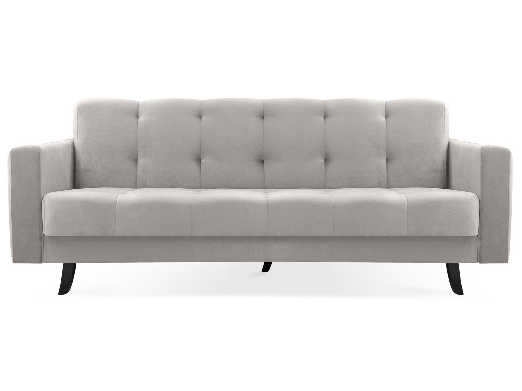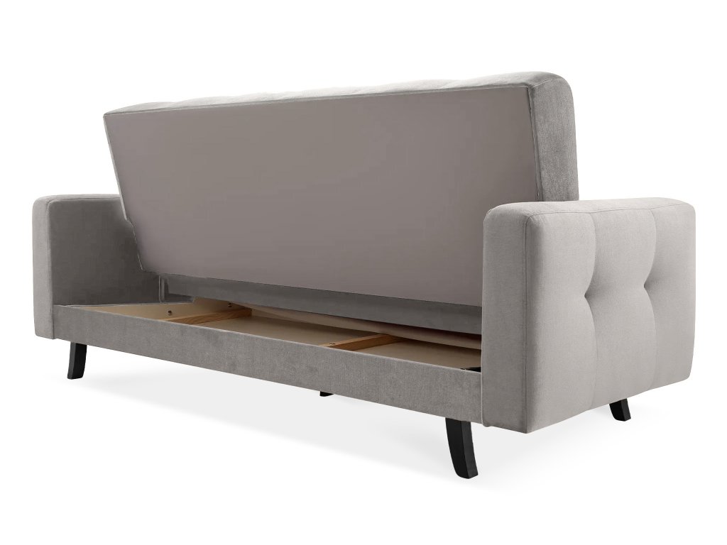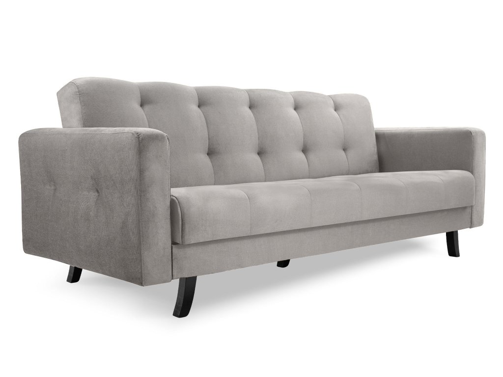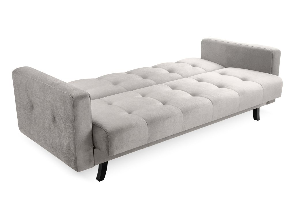 Engedje meg, hogy bemutassuk a Lisszabon kihúzható kapanét, amely egy igazán sokoldalú és praktikus bútordarab. A kanapéágy elegáns szürke velvet szövettel kárpitozott, amely nem csak gyönyörű kinézetet kölcsönöz a bútornak, de igazán ellenálló a sérülésekkel szemben is. A széthúzható kanapé szép steppeléssel ellátott az ülőfelületén és a háttámlán is, melynek köszönhetően az egész nagyon elegáns hatást kelt. A kanapé hátoldala szövettel borított. A kanapéágy minőségi Bonell rugókkal van ellátva, melyek vastagsága 2,4 mm, továbbá 3 centiméter vastag T30-as habbal. Tömör fából és ellenálló laminált bútorlapból készül, amelyek jól tűrik a magas hőmérsékletet, a párát és ellenállóak a karcolásokkal szemben. A szétnyitható kanapé fából készült vázzal rendelkezik és stílusos fekete tömör fa lábakon áll. Ezenkívül egy kis tároló hellyel is el van látva az ülőfelület alatt. A szétnyitása a kényelmes Click-Clack rendszerrel történik, amely nagyon egyszerű és könnyű. Tökéletes választás lehet a nappaliba vagy a vendégszobába is.