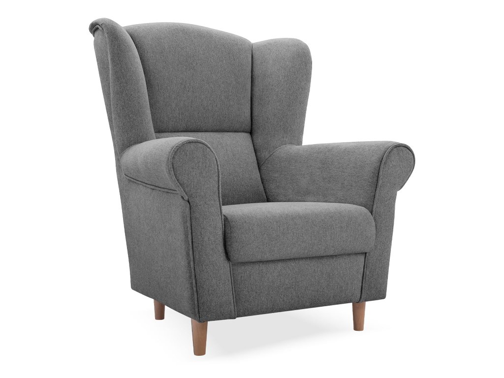 Elegáns világosszürke LOFT füles fotel gyönyörű kialakítással és fából készült lábakkal